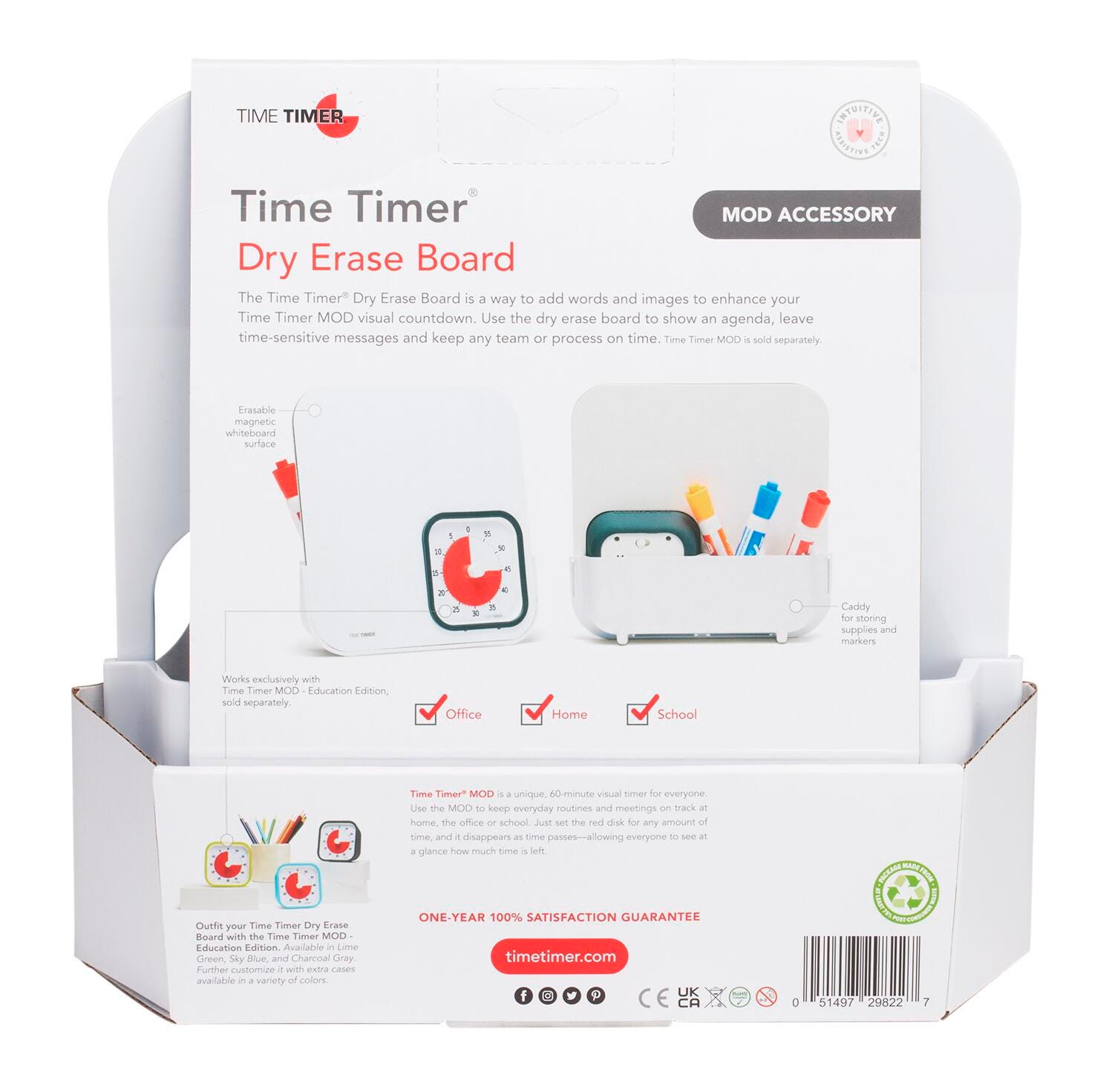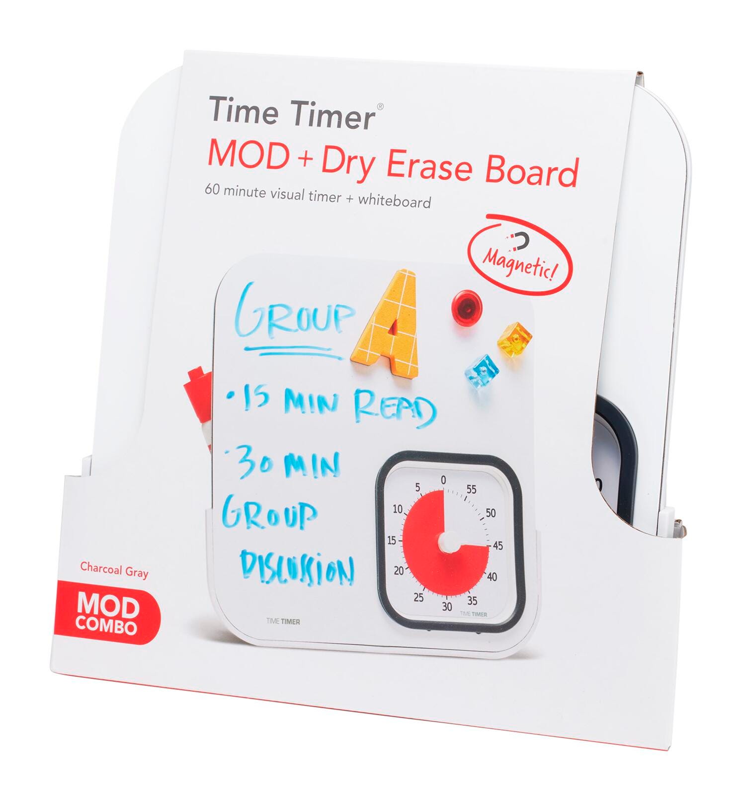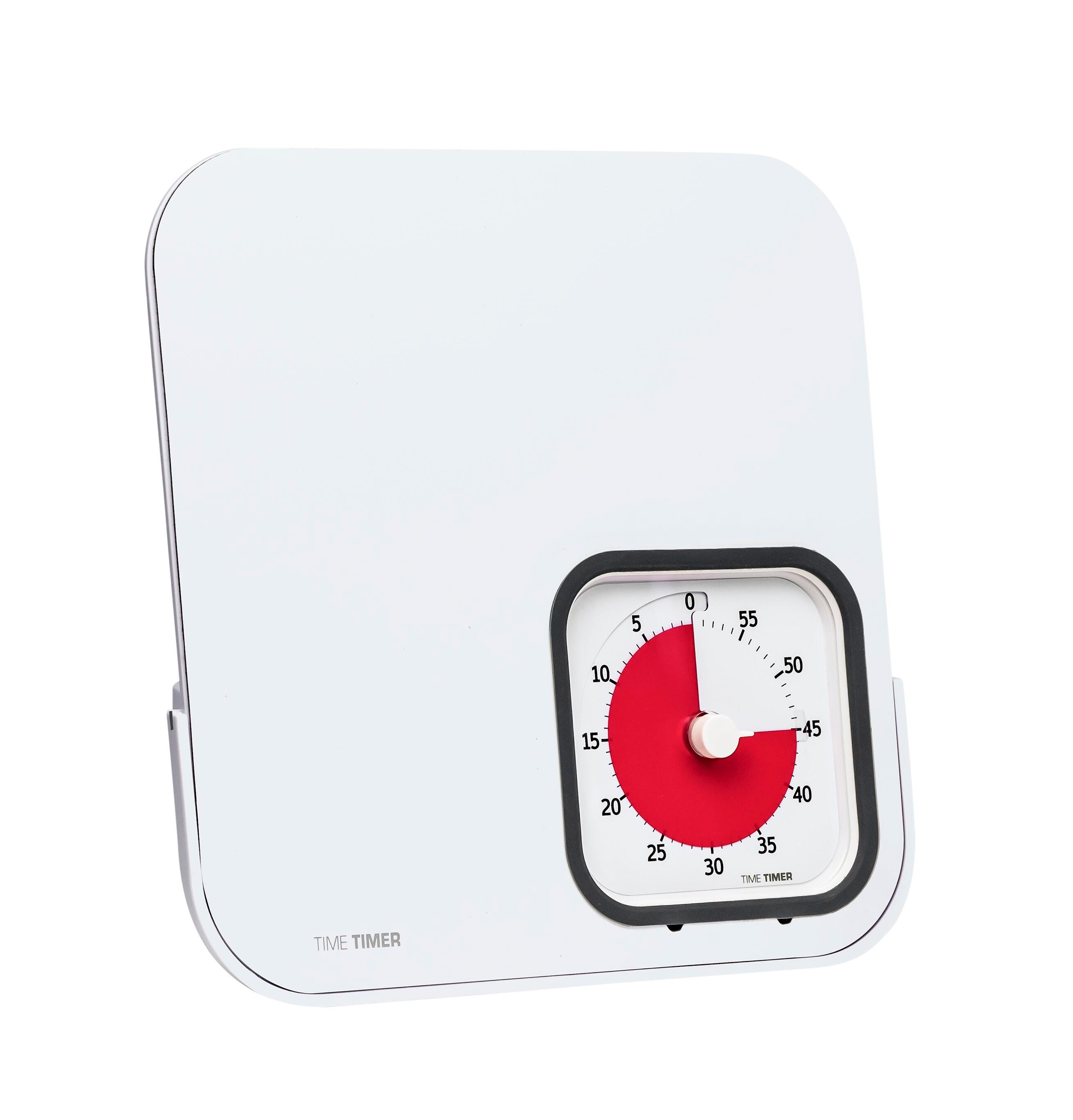 The Time Timer Dry Erase Board is now magnetic! Available as a combined unit including a Time Timer MOD visual timer in Charcoal Grey; please note that the Time Timer MOD must include a silicone case in order to fit in Dry Erase Board properly. The Time Timer Dry Erase Board is an activity and message center for office, home and school. The Time Timer MOD is a 60-minute visual timer that's portable and easy to use anywhere—from your office desk to the kitchen counter. Dry Erase markers not included. Note: To use the Dry Erase Board accessory with the Time Timer MOD - Home Edition, a protective case must be purchased separately to ensure a proper fit. Ensure each step in a routine is followed - nothing is missed! All important topics for a meeting are covered in the time allowed.
