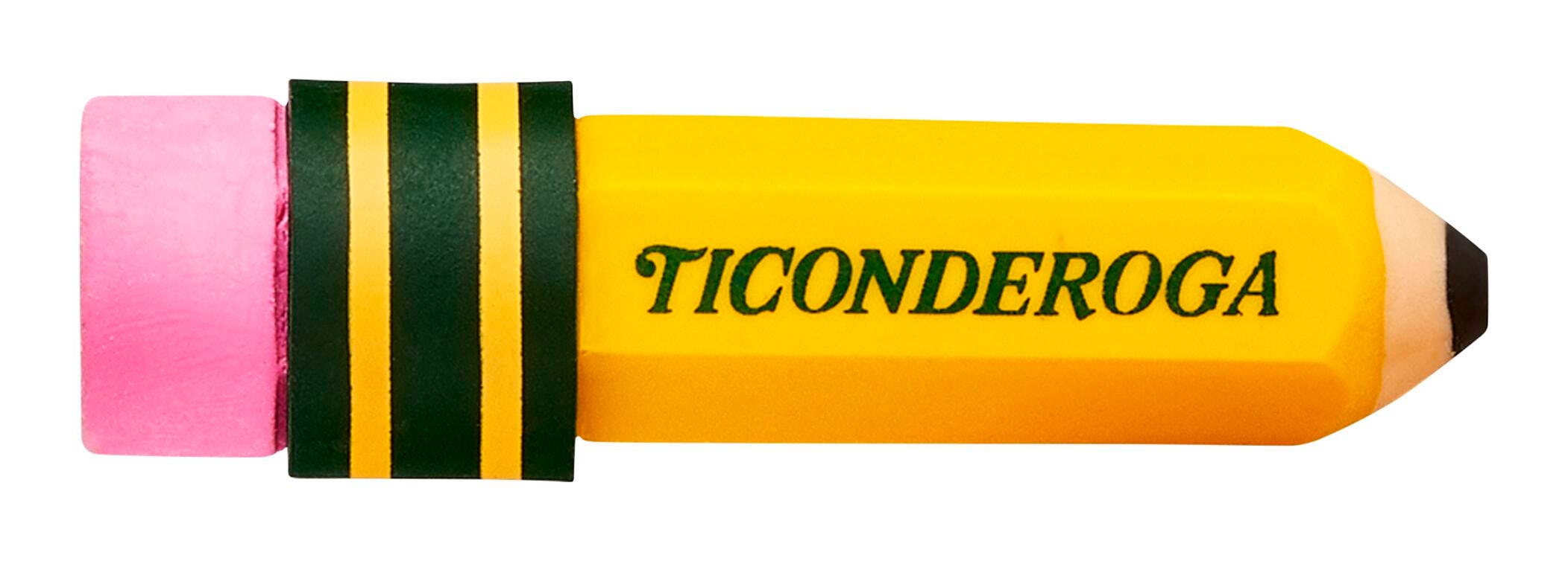 Ticonderoga delivers its iconic pencil design for writing and erasing! These fun Pencil-Shaped Erasers resemble the classic Ticonderoga pencil shape and offer easy, clean, and skid-free corrections every time. They feature a classic yellow pencil body, an oversized "metal" ferrule, and even a point designed to look like lead. Each part of these "pencils" can be used, offering the best angles and points for errors big and small. These child-friendly erasers are PMA-certified and latex-free. Each eraser measures approximately 7-1/4 x 3-3/4 x 3/4 inches.