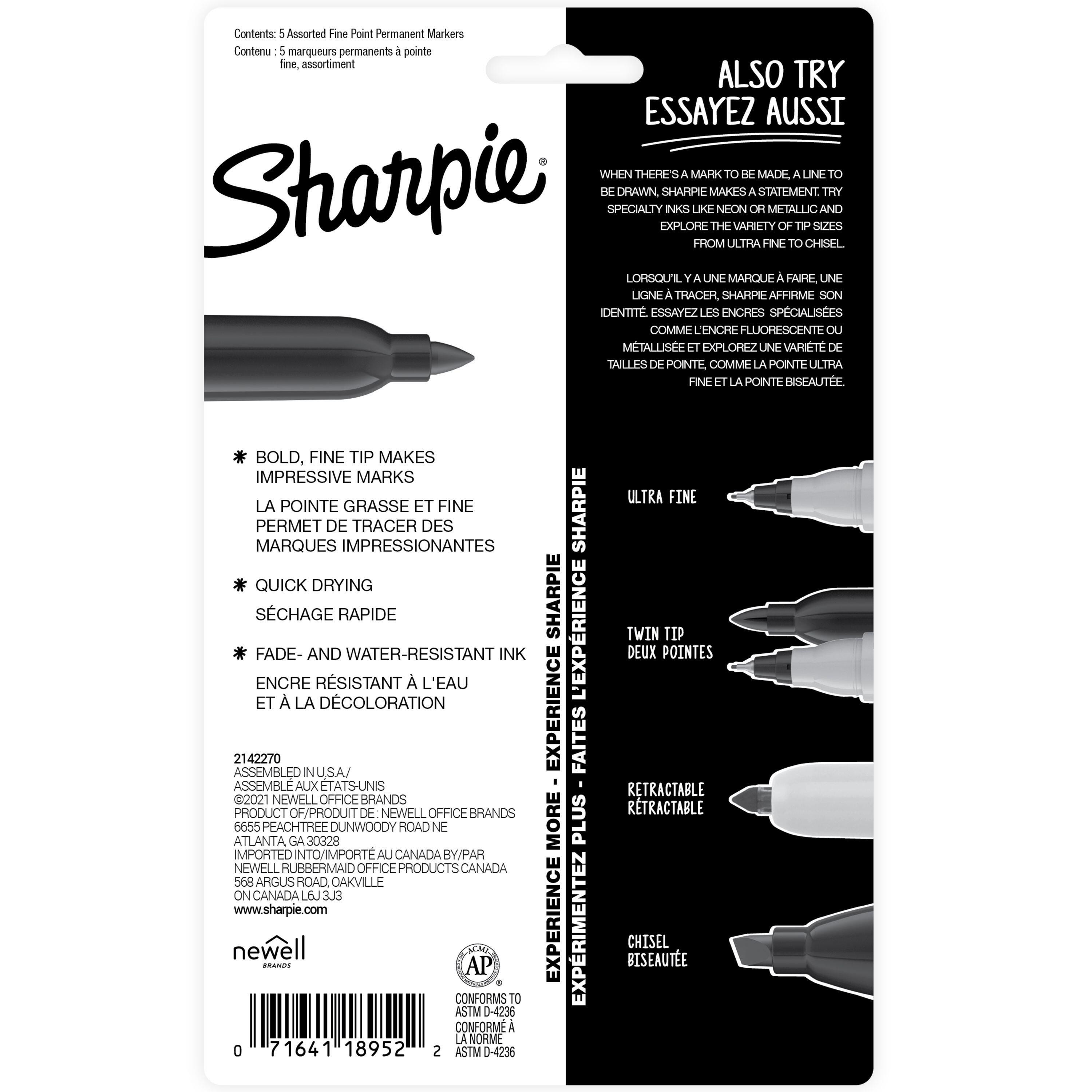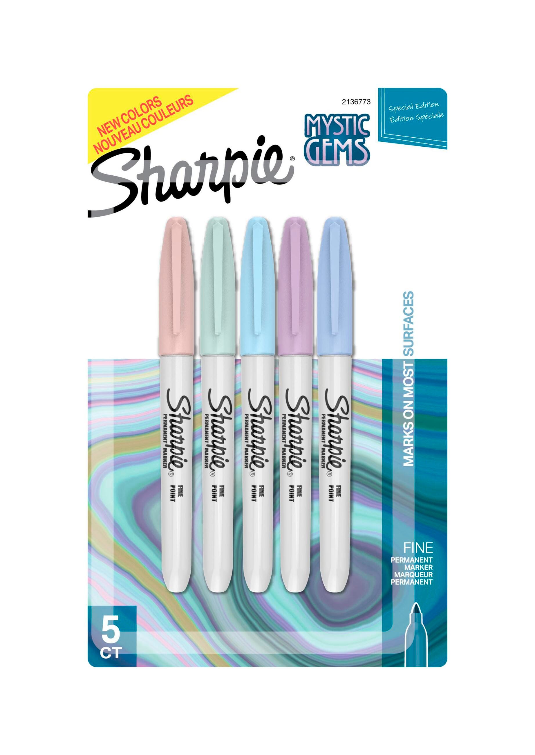 Sharpie Permanent Markers are designed to write, draw, or mark almost anywhere so you can transform ordinary surfaces into vibrant creative statements. Each Sharpie features a long-lasting fine point that delivers the iconic quick-drying ink that resists both water and fading. This pack of 5 permanent markers includes an assortment of Mystic Gem colors inspired by the vibrant energy of gemstones.