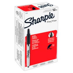 Sharpie Retractable Permanent Markers, Fine Tip, Black, Pack of 12