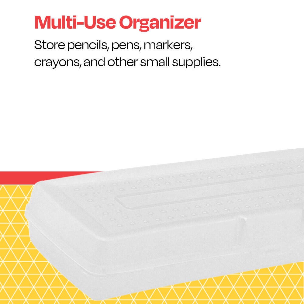 • Solid one-piece pencil box provides convenient place to contain pencils, pens, crayons, and other writing utensils