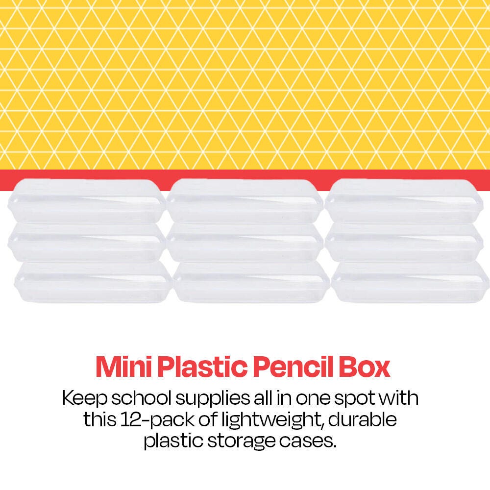 School Smart provides high-quality storage solutions for your daily essentials. These Mini Lightweight Pencil Cases (each measuring 7-1/2 L x 3 W x 1-3/4 H inches) can fit in your desk, office drawer, purse, backpack, and more. They are made of a hard clear plastic and hold standard-sized pens and pencils. This pack delivers 12 pencil cases to help you improve organization in the classroom, office, or home.