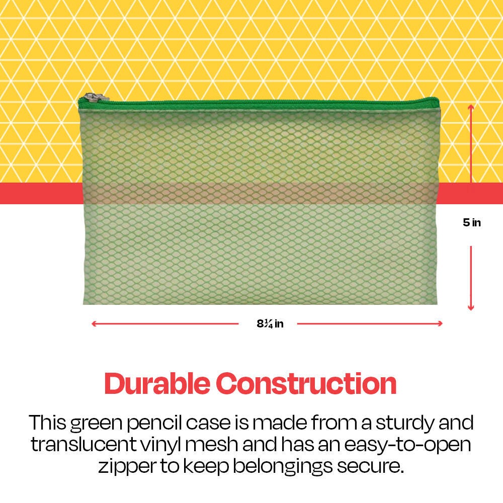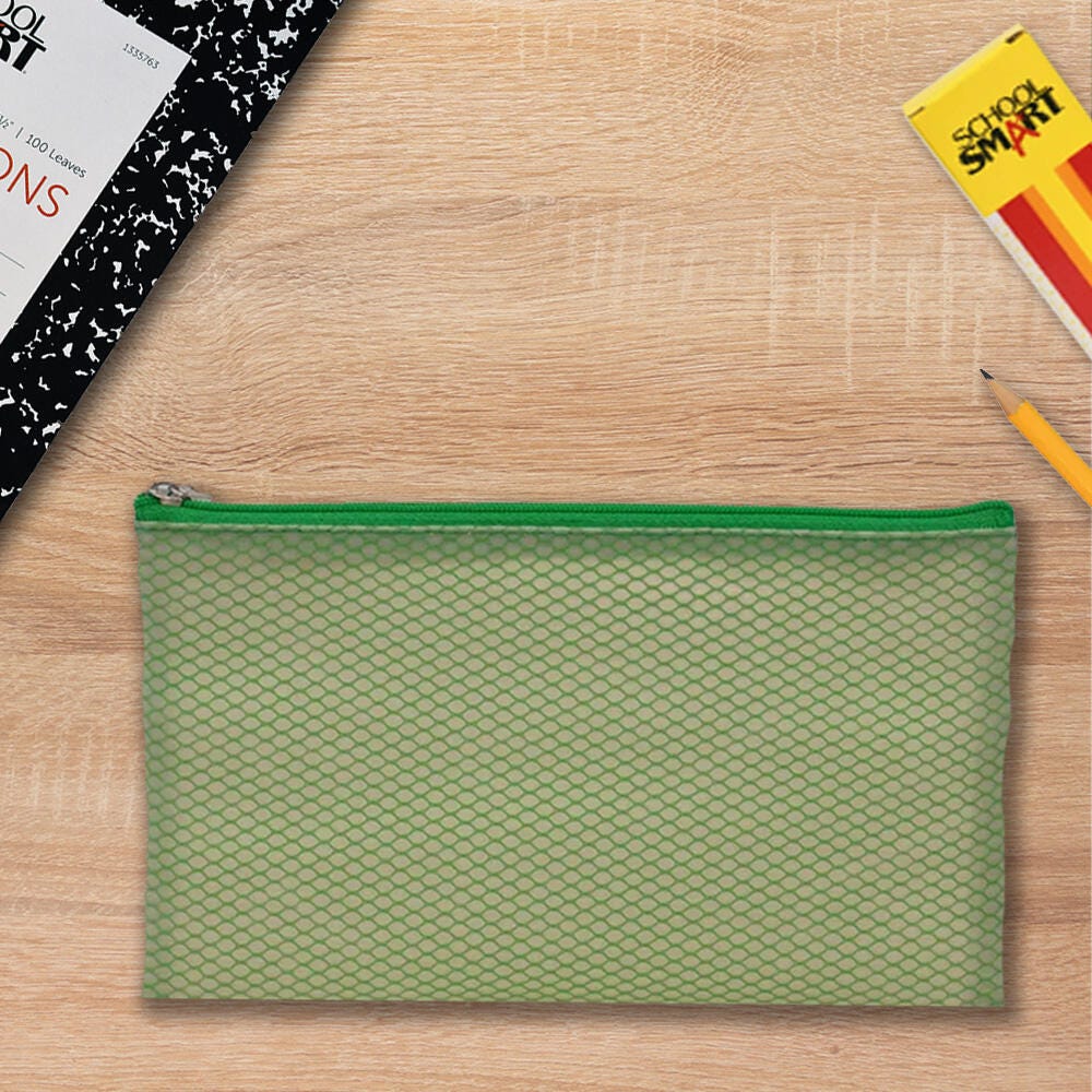 School Smart Pencil Case Pouch, Vinyl and Mesh, Green