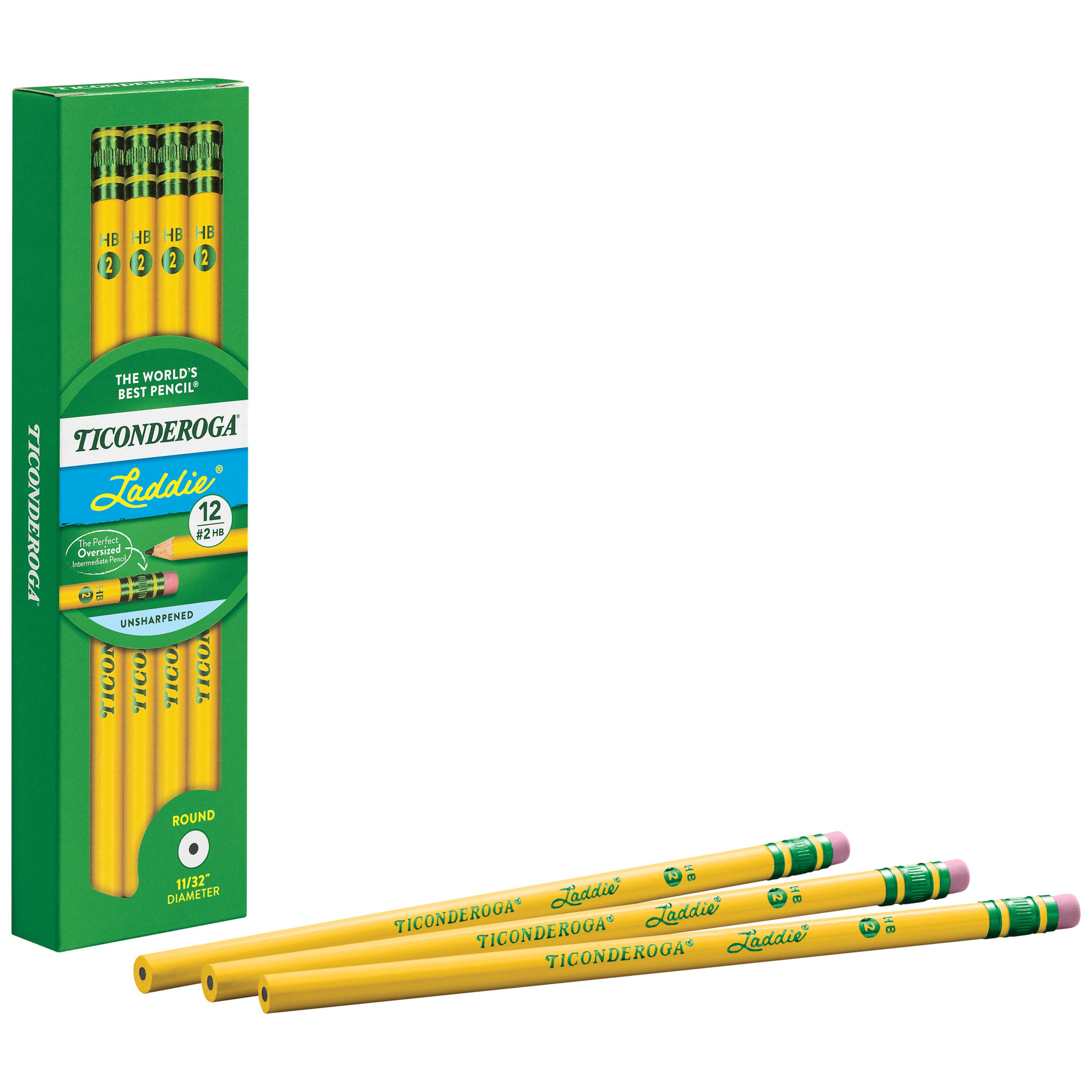 Ticonderoga delivers the Laddie Pencil as the intermediate step as young writers make the transition from beginner pencils. These handy pencils have a thicker 11/32 inch diameter, designed for primary grades to help prepare students for slimmer, standard-sized pencils. Each pencil features a thick graphite core that provides smooth, smudge-free writing and a latex-free eraser for clean corrections. These pencils do not come pre-sharpened.