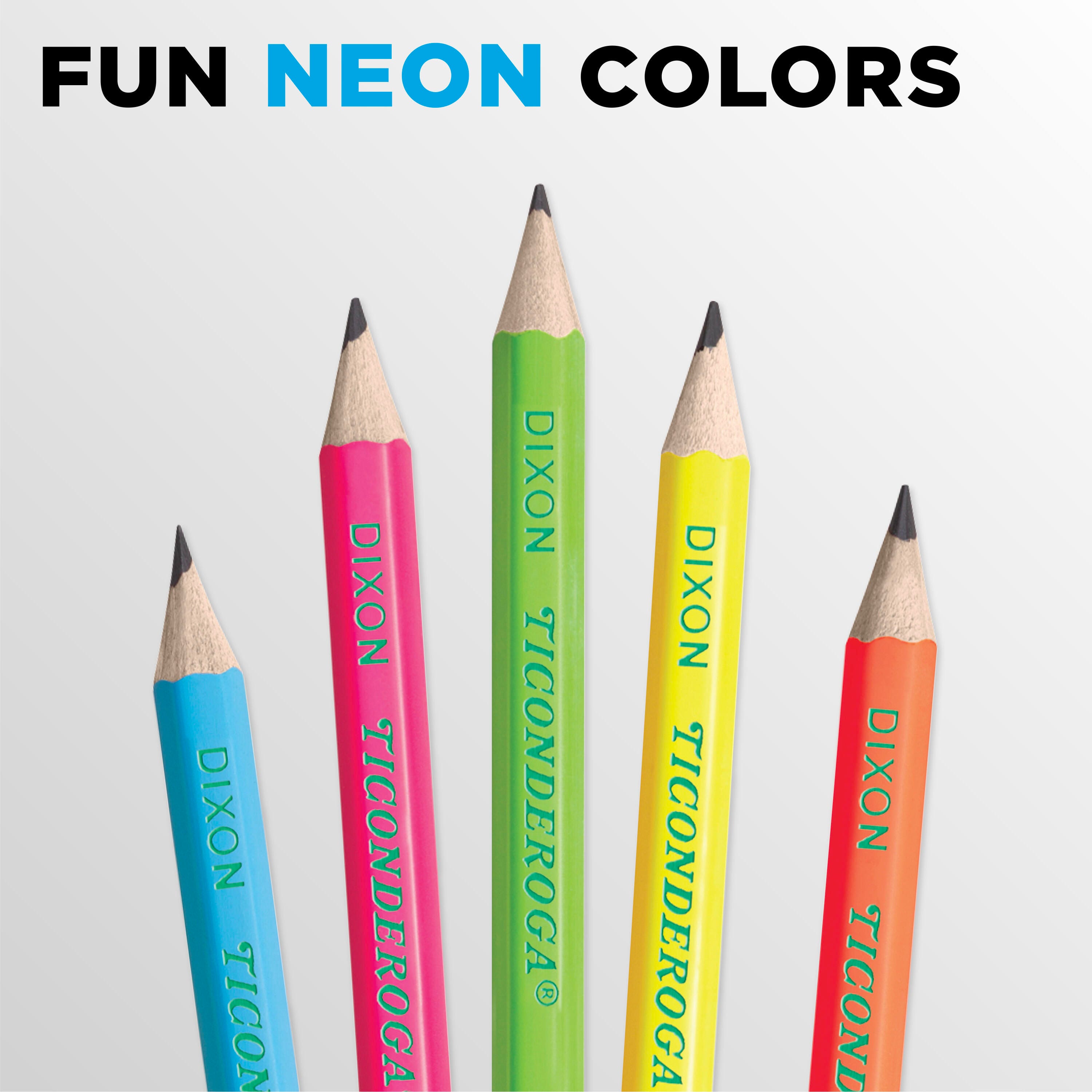 Ticonderoga Neon Wood-Cased Pencils, No 2 HB, Sharpened, Assorted Neon Colors, Pack of 18