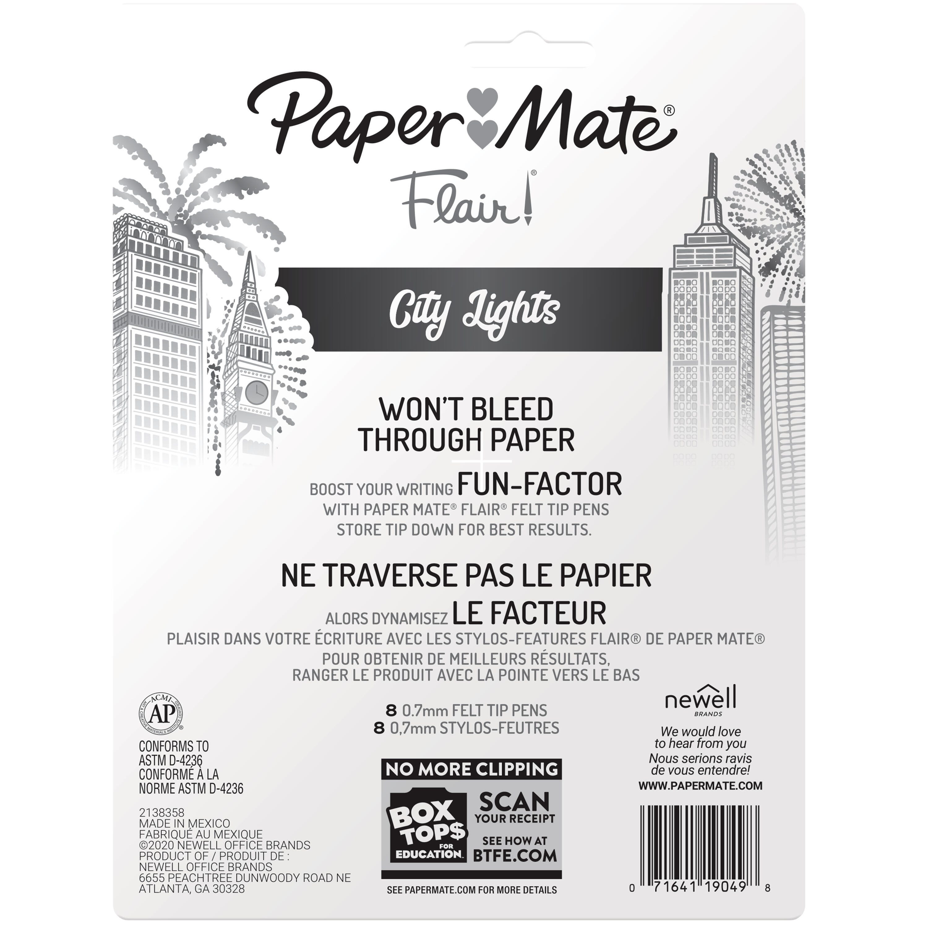 Paper Mate Flair Felt Tip Pens, Medium Point, 0.7 mm, Assorted Metallic City Lights Colors, Set of 8