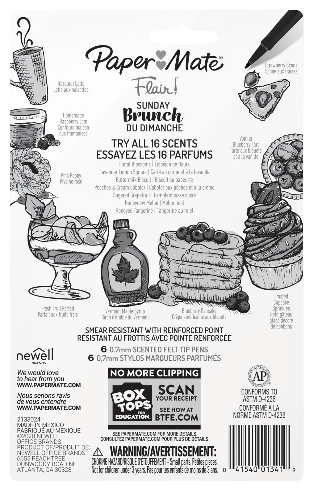 Paper Mate Flair Scented Felt Tip Pens, Medium Point, 0.7 mm, Assorted Sunday Brunch Scents and Colors, Set of 6
