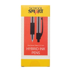 School Smart black gel and ink pens have a hybrid design to give you the best writing experience. The retractable pens offer high-performance ink technology and a quick dry all in one convenient, comfortable design. Smear-proof and smudge-proof liquid gel ink dries rapidly, allowing you to close up notebooks or seal up letters instantly without worry. A medium-sized nib is 0.7 mm to allow for all-purpose writing. The spring-loaded ink cartridge retracts and extends outside a protective housing, and the clear barrel allows you to see exactly how much ink is left. Choose our hybrid gel ink pens for all of your writing needs.Features