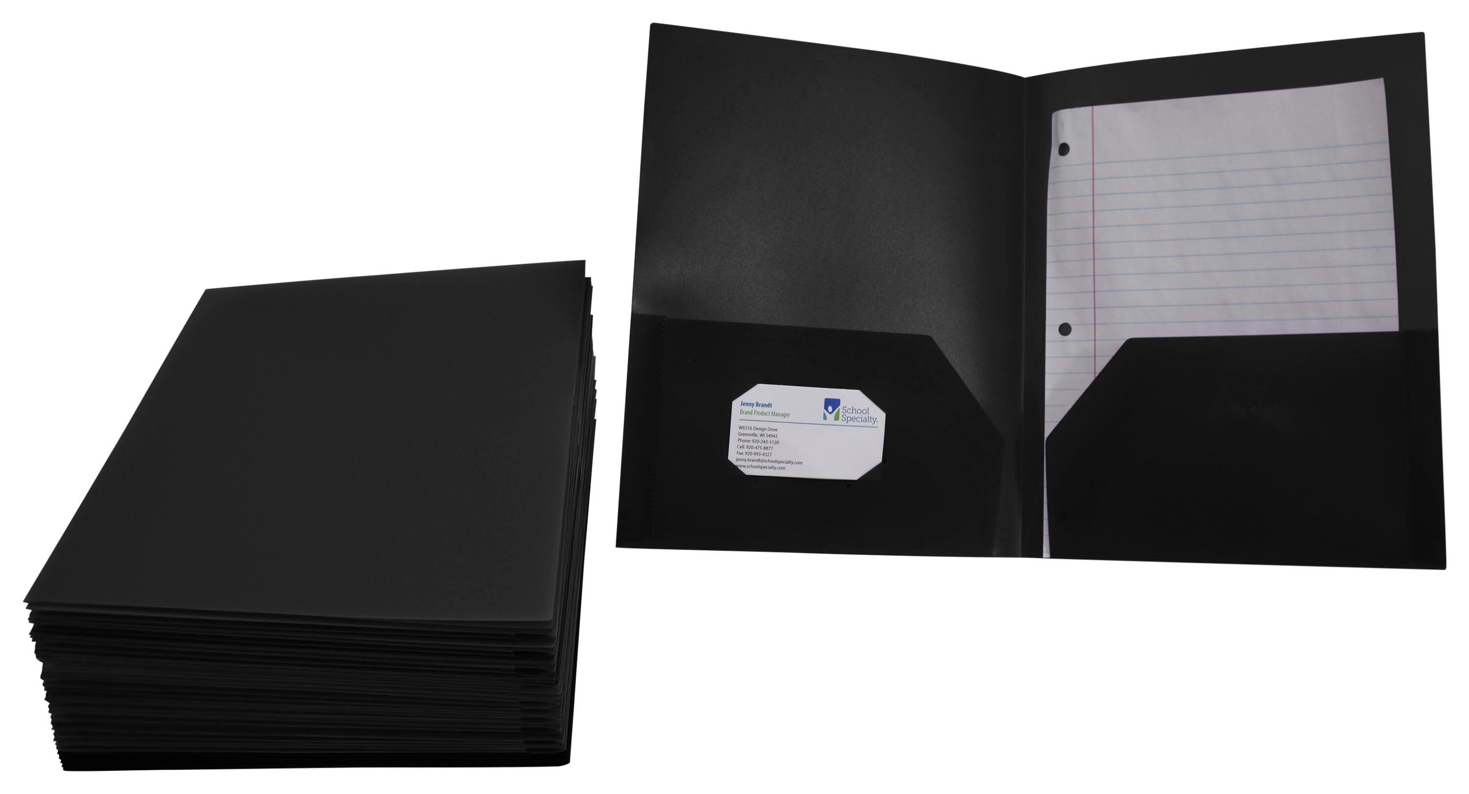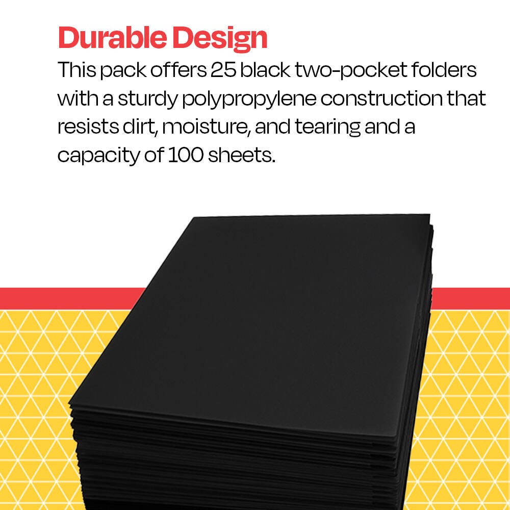 School Smart 2-Pocket Poly Folders, Black, Pack of 25