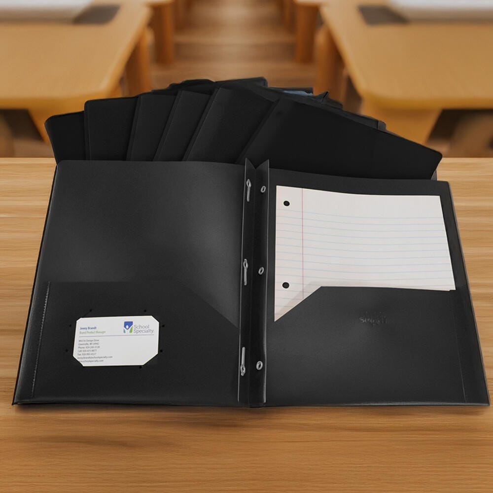 Heavyweight polypropylene pocket folders are easy to clean and resist tearing for long-lasting use and reliable protection
