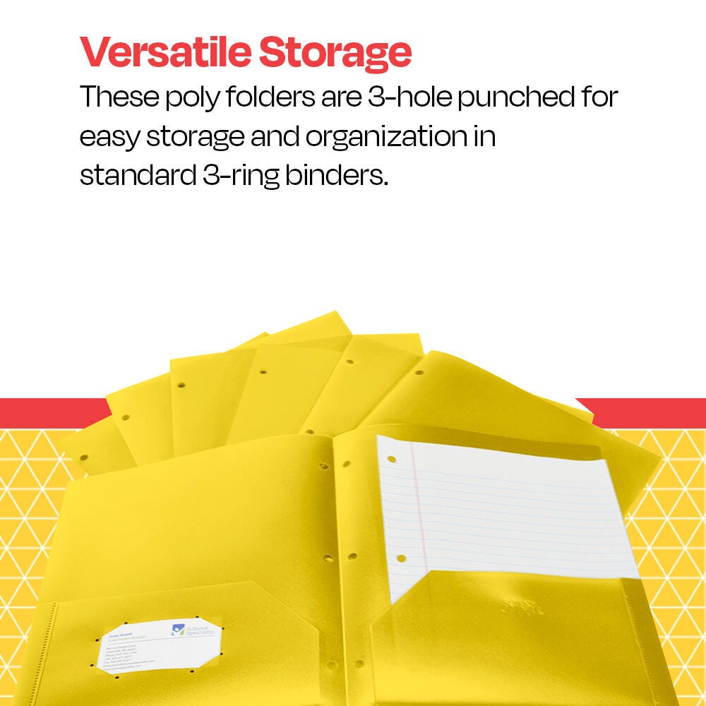 School Smart 2-Pocket Poly Folders, Letter Size, 3-Hole Punch, Yellow, Pack of 25