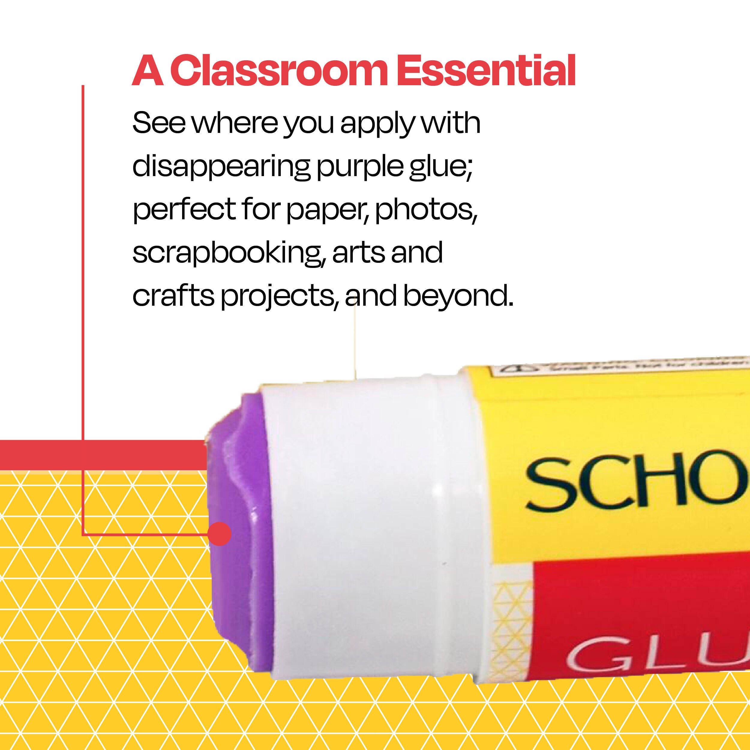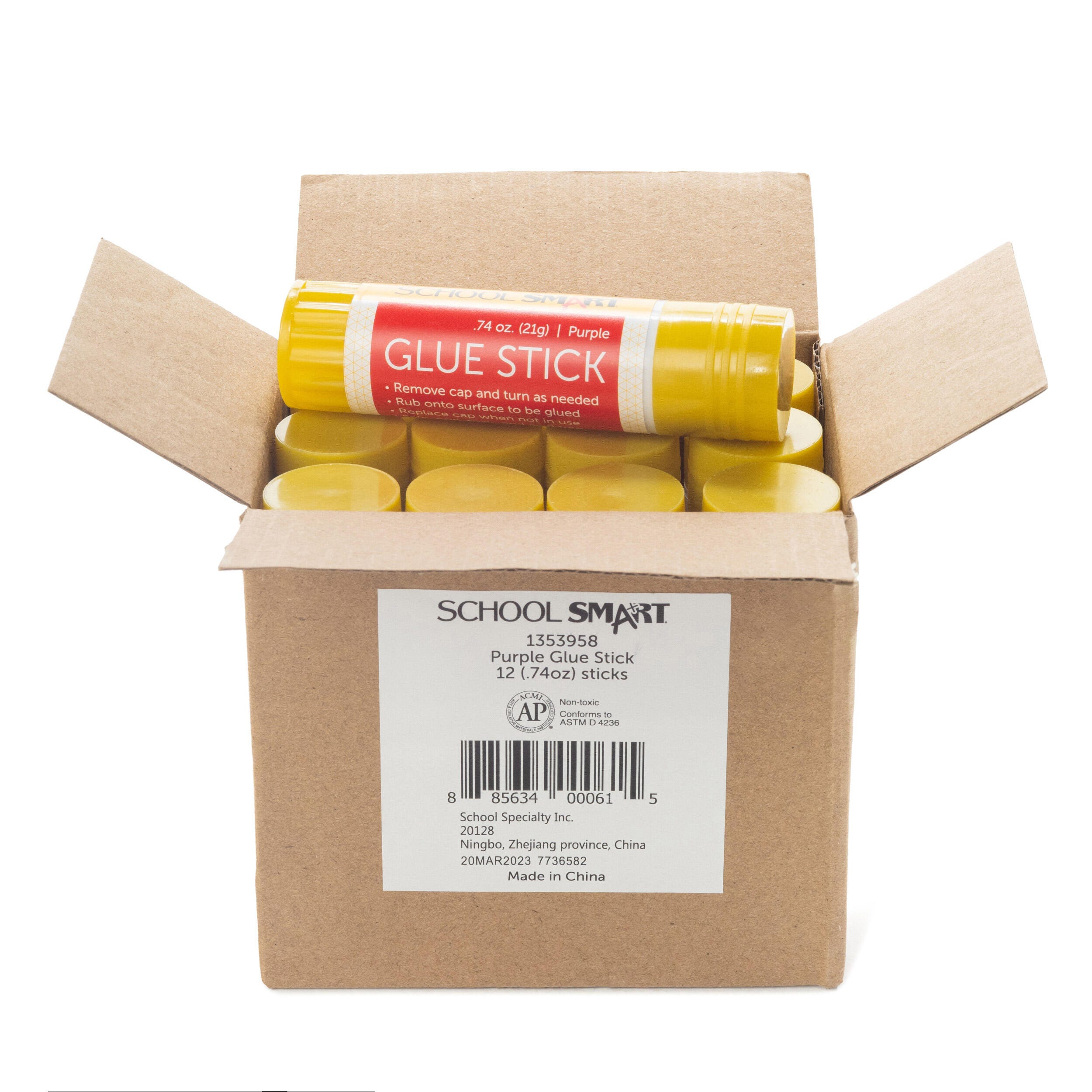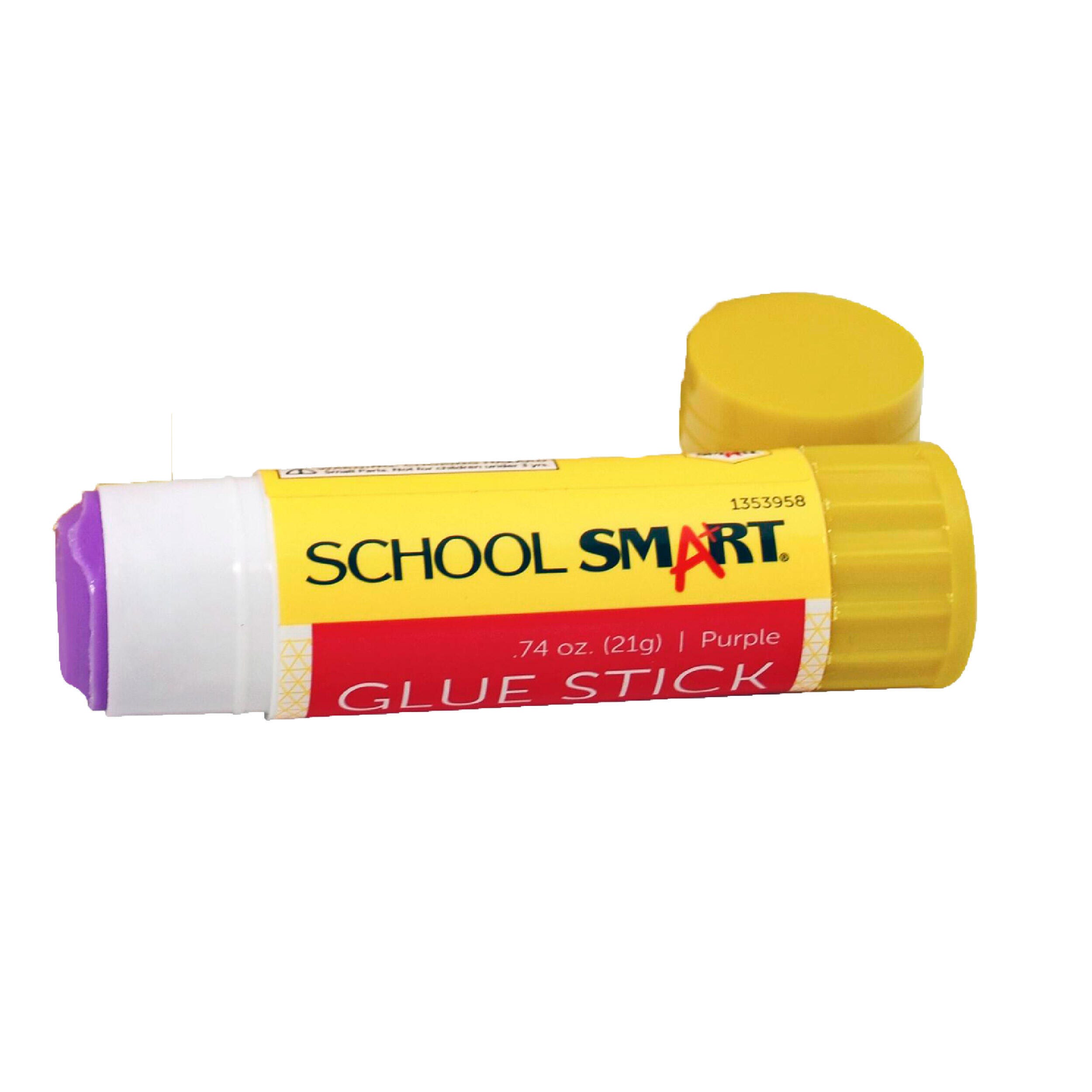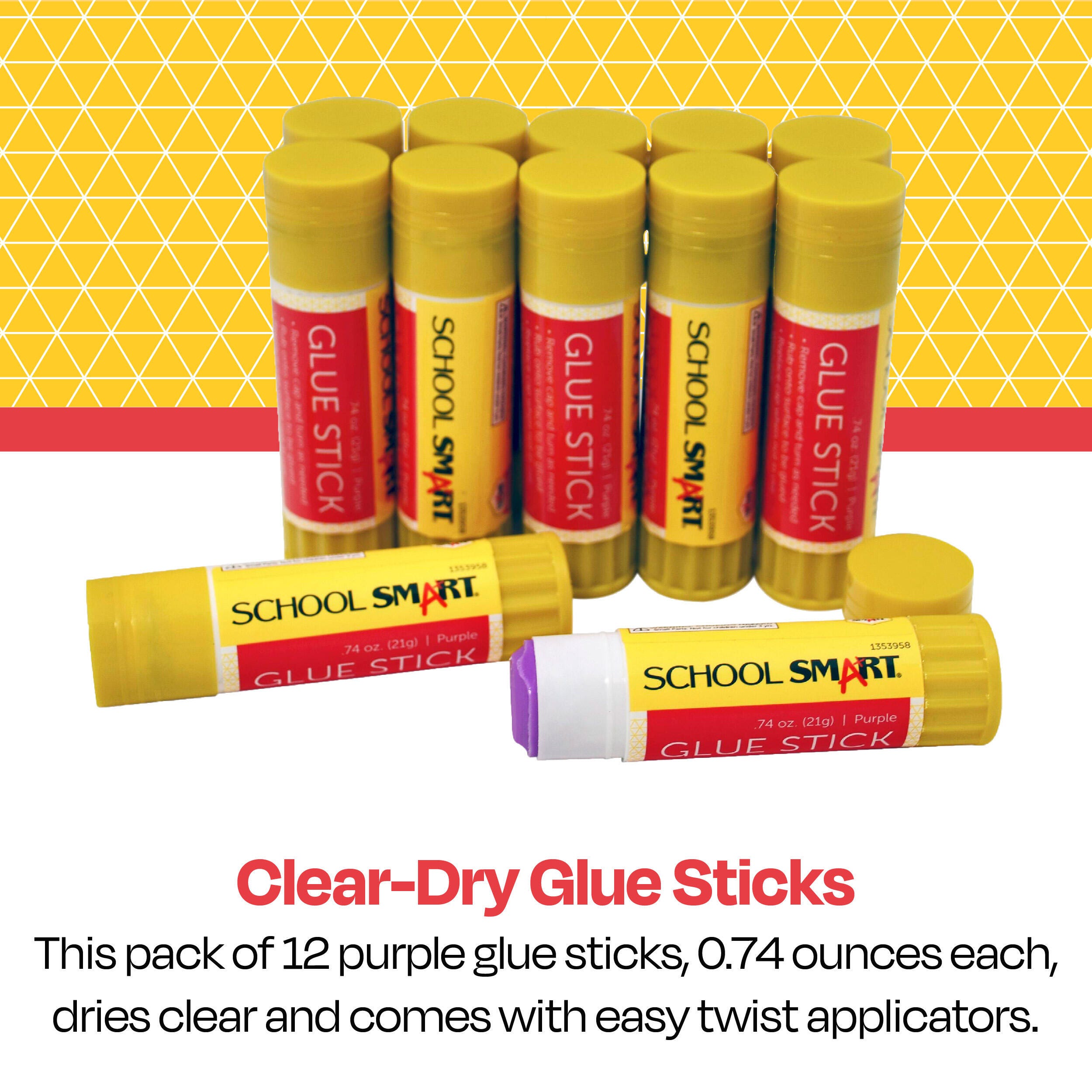 • School Smart Glue Sticks, 0.74 Ounces, Purple and Dries Clear, Pack of 12