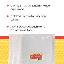 - 3-hole punched to conveniently fit into binders for an additional layer of protection
