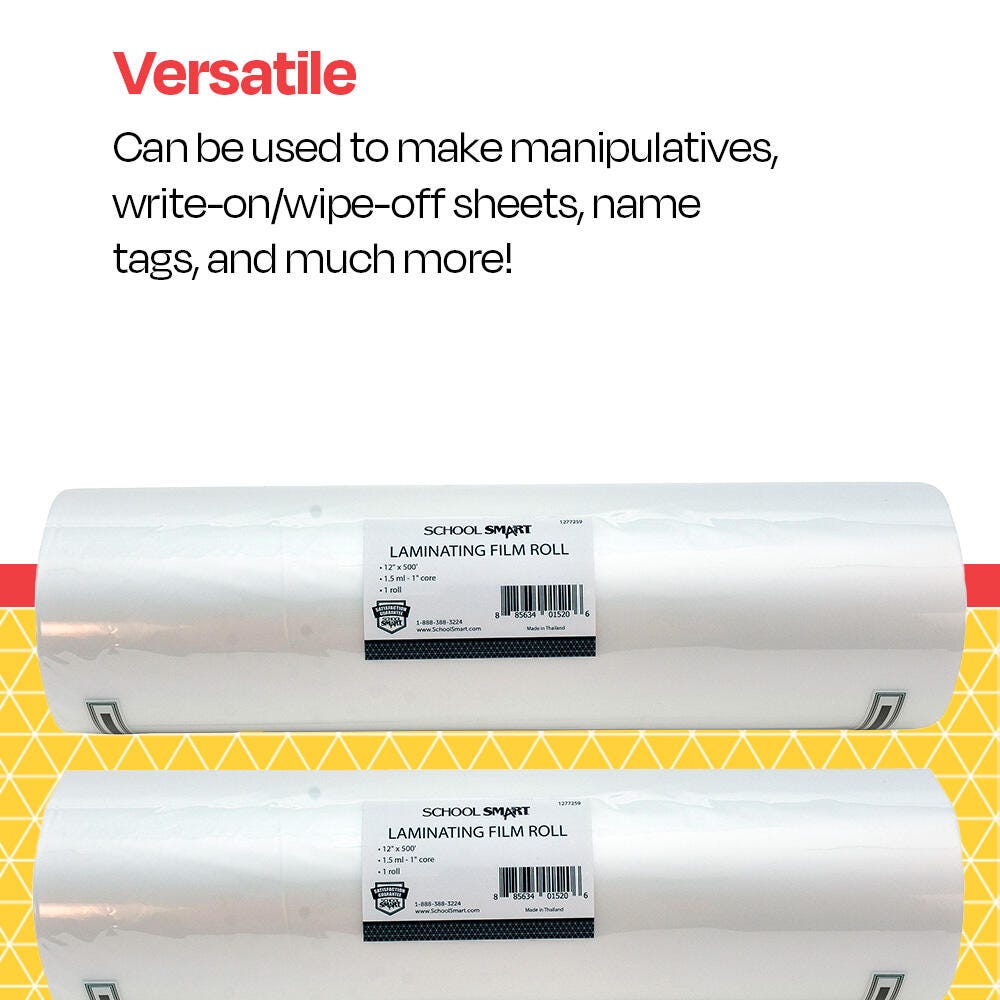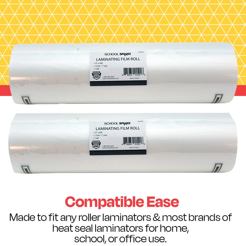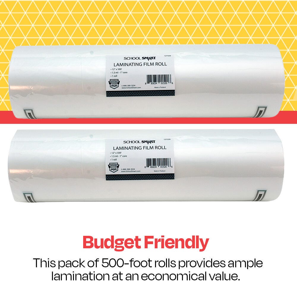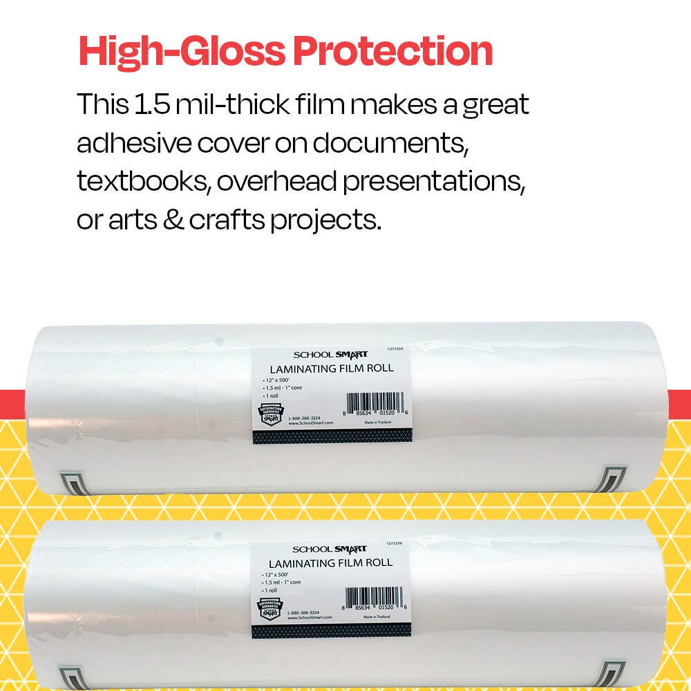 School Smart Laminating Film Roll, 12 Inches x 500 Feet, 1.5 mil Thick, High Gloss, Pack of 2