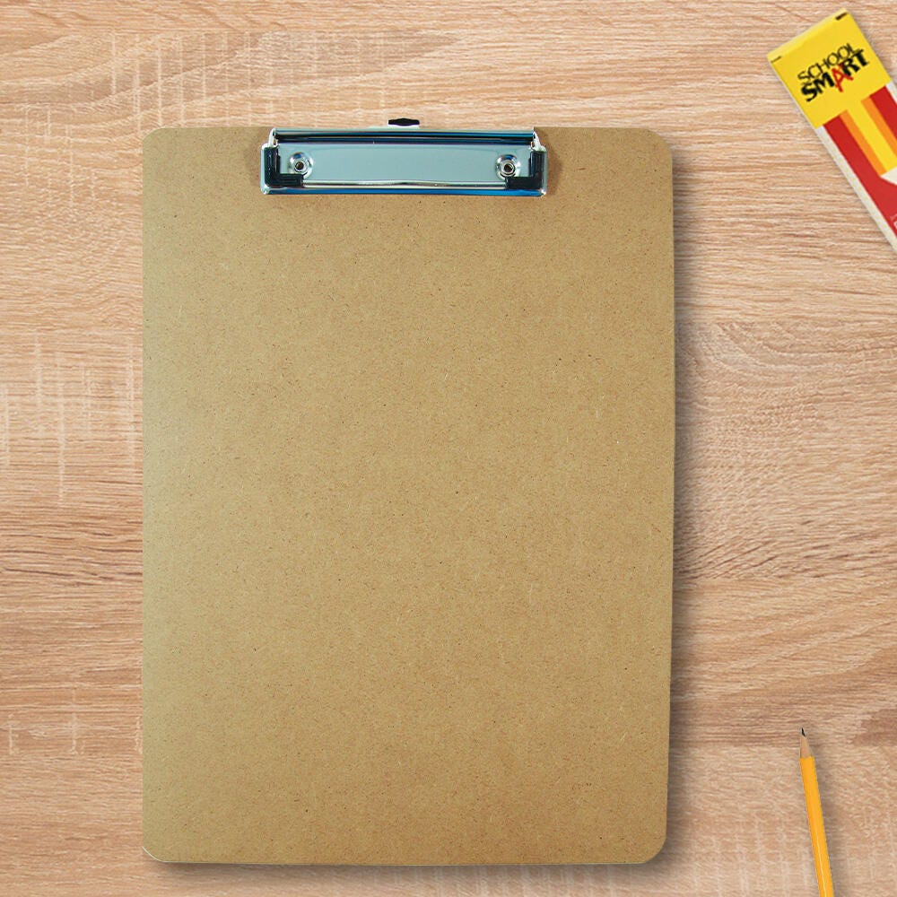 School Smart Masonite Clipboard, 9 x 12-1/2 Inches, Low Profile Clip, Letter Size, Brown