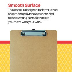 School Smart Masonite Clipboard, 9 x 12-1/2 Inches, Low Profile Clip, Letter Size, Brown