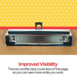 - Low-profile clips cover less of the page for easier writing or reading and have an integrated hanging hole for simple storage