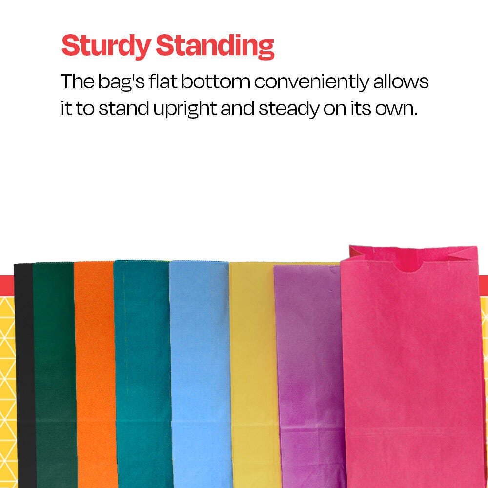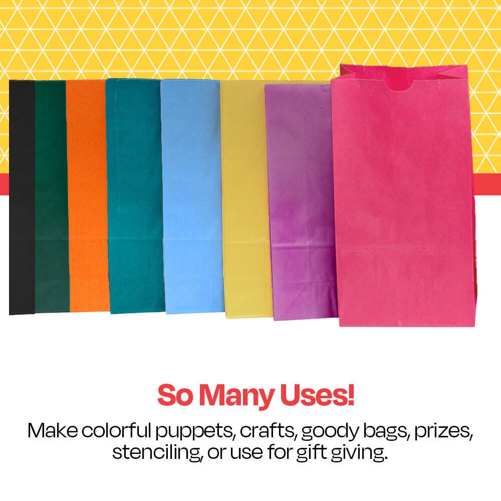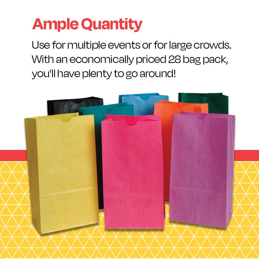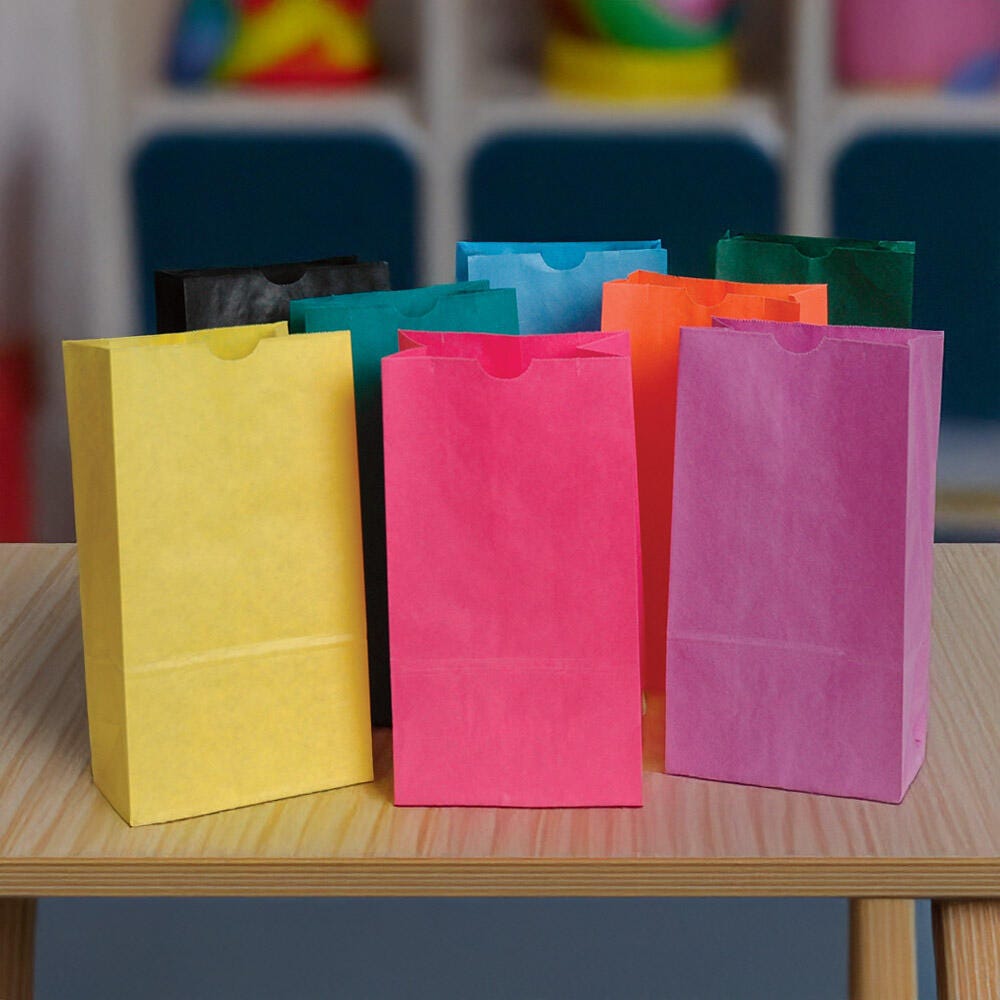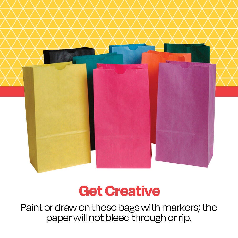 Kraft paper bags are great for puppets, crafts, goody bags, prizes, stenciling, and gift giving. With 8 assorted colors, these kraft bags offer plenty of options that can be further decorated with art media, including crayons, markers, paints, glue, stickers, and more. Each bag measures 6 x 11 inches and holds 6 pounds. Flat bottom bases stand up alone without toppling. Sold as pack of 28.Pack will contain a variety of the colors listed and shown. Some colors may not be included.