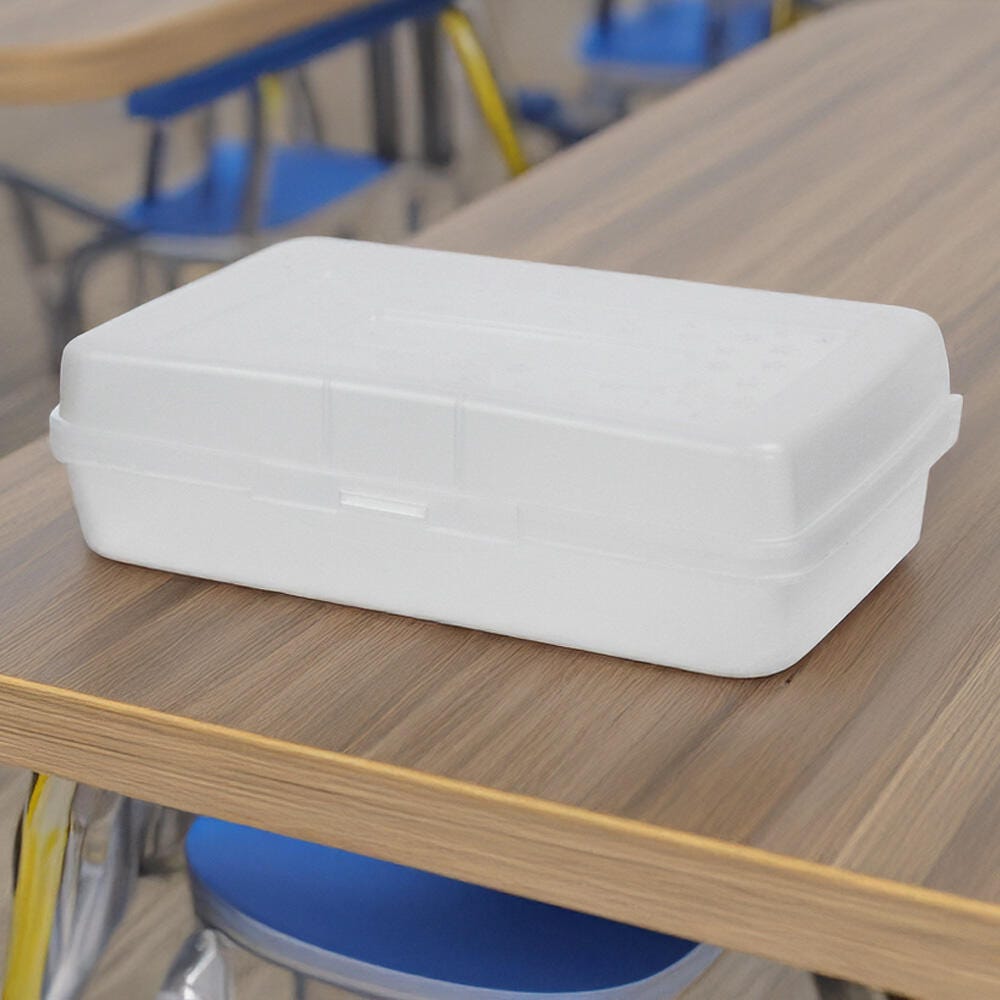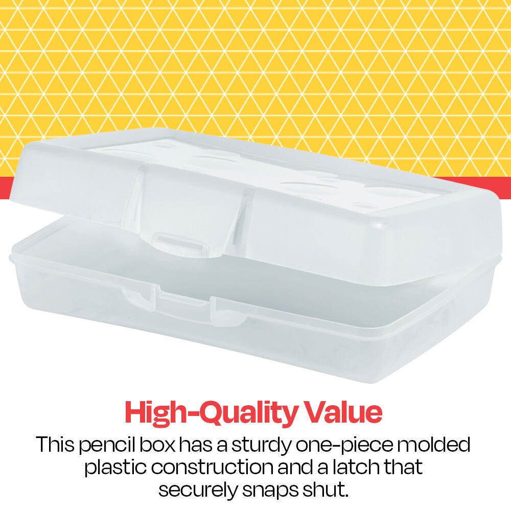 This Pencil Box from School Smart offers easy organization for daily supplies in schools and offices. It features a molded plastic construction and a snap-shut lid. The translucent plastic allows simple visibility of the contents. This durable pencil box is perfect for storing pencils, pens, markers, crayons, and keeps your school, office, or art supplies secure and protected.