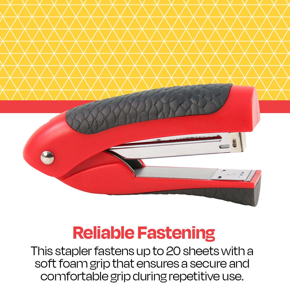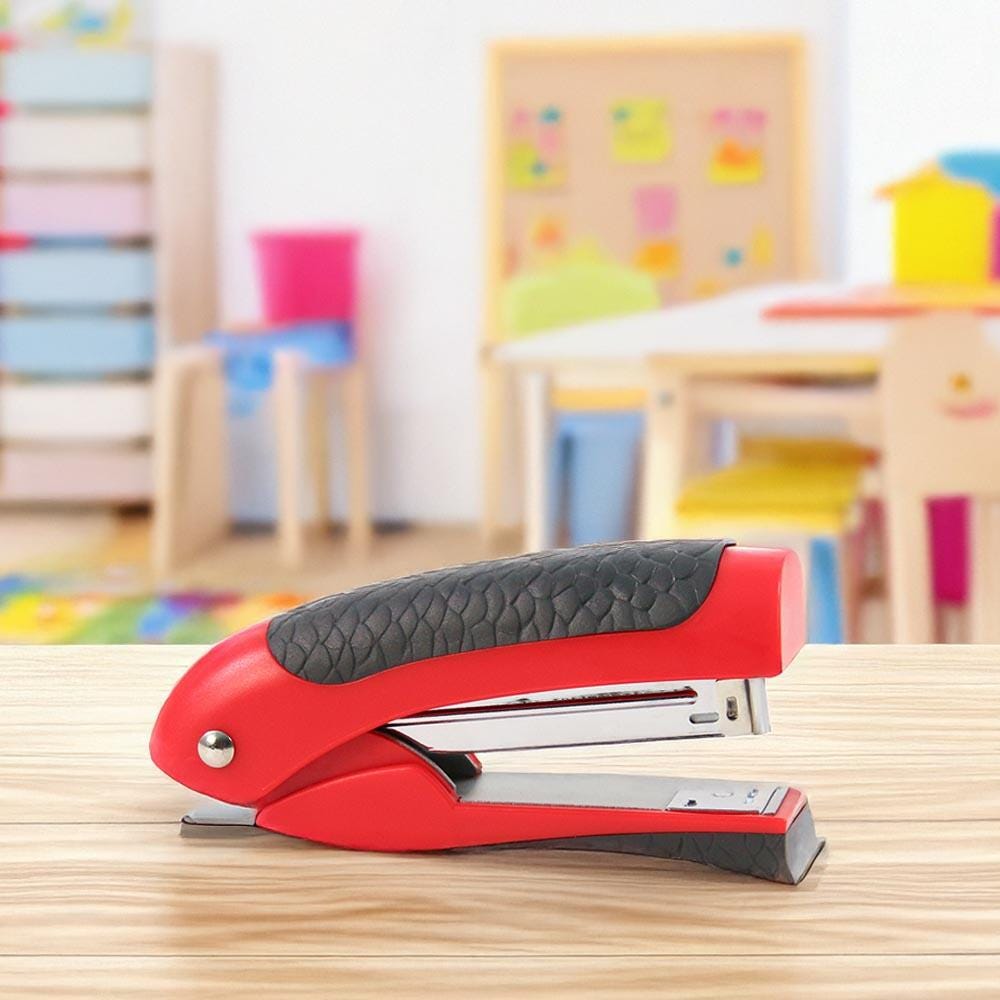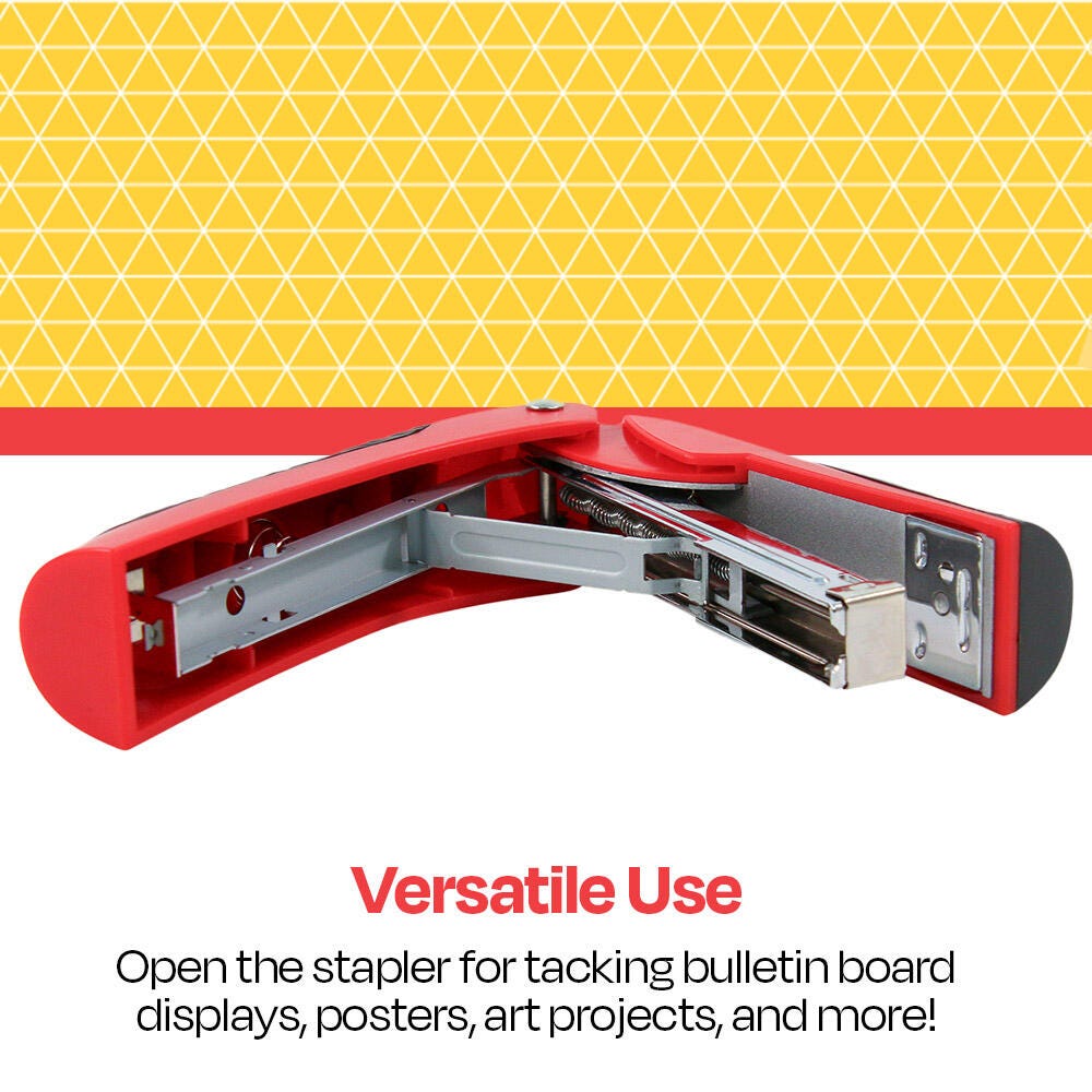 Eye-catching red stapler is helpful asset for school, office, home, or arts and crafts projects