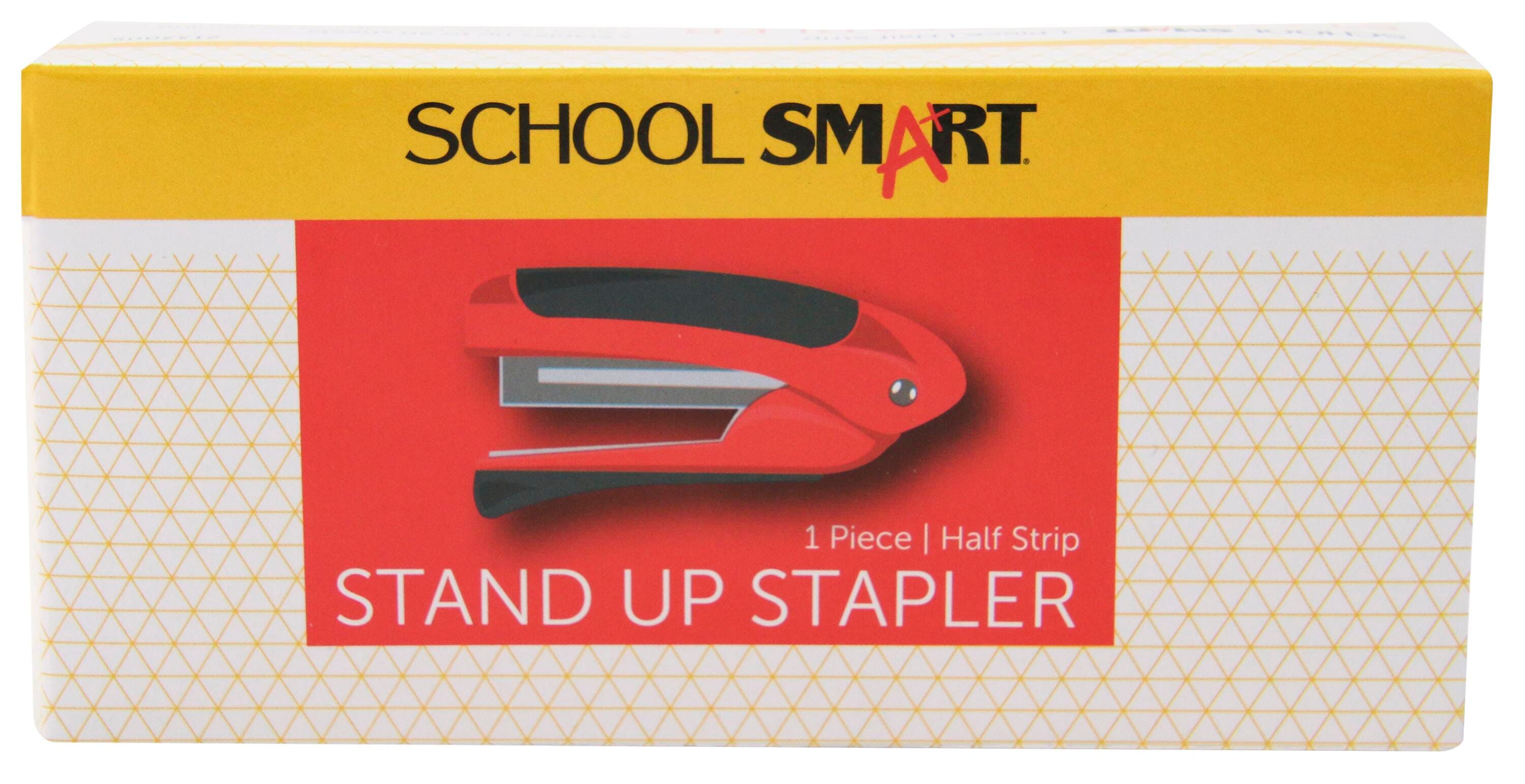 School Smart Stand-Up Stapler, Half Strip Regular Staples, Red