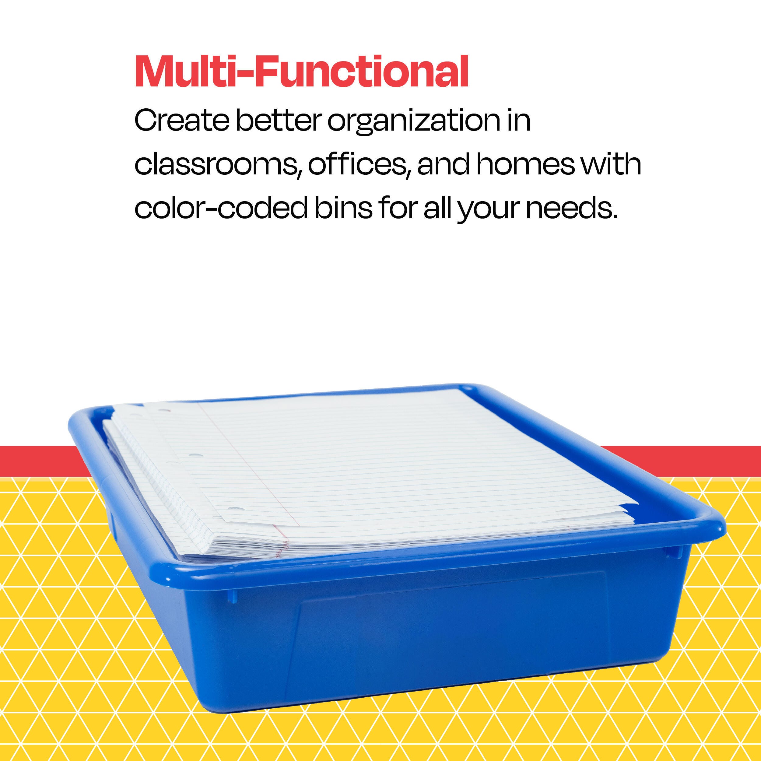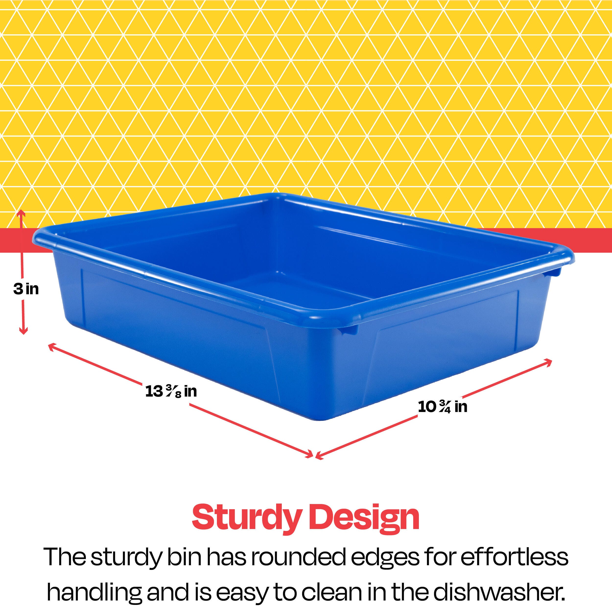 School Smart blue storage trays are designed to neatly organize all your letter-sized handouts, booklets, and papers. Our smaller letter size plastic storage containers are made of nonporous plastic and are dishwasher-safe and drop-resistant. Whether you’re teaching STEM or STEAM, the bright colors help with classroom organization, and your imagination sets the limit. Use the plastic bin for elementary schools, kindergarten, preschool, childcare centers, and playrooms. The box works well as a school supply storage bin, arts and crafts container, toy organizer, and more.