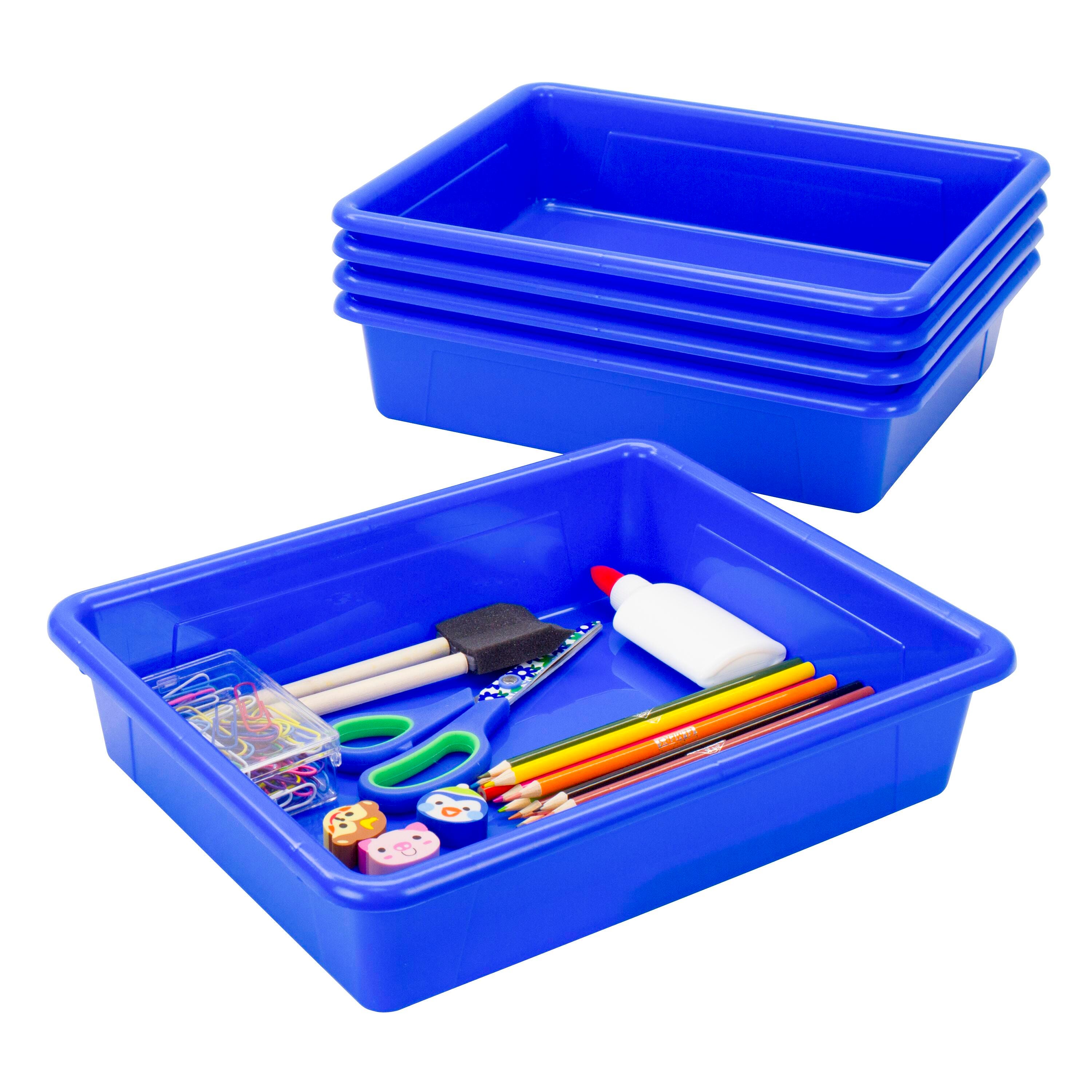 School Smart blue storage trays are designed to neatly organize all your letter-sized handouts, booklets, and papers. Our smaller letter size plastic storage containers are made of nonporous plastic and are dishwasher-safe and drop-resistant. Whether you’re teaching STEM or STEAM, colored bins help with classroom organization, and your imagination sets the limit. Use the plastic bins for elementary schools, kindergarten, preschool, childcare centers, and playrooms. Each box works well as a school supply storage bin, arts and crafts container, toy organizer, and more.
