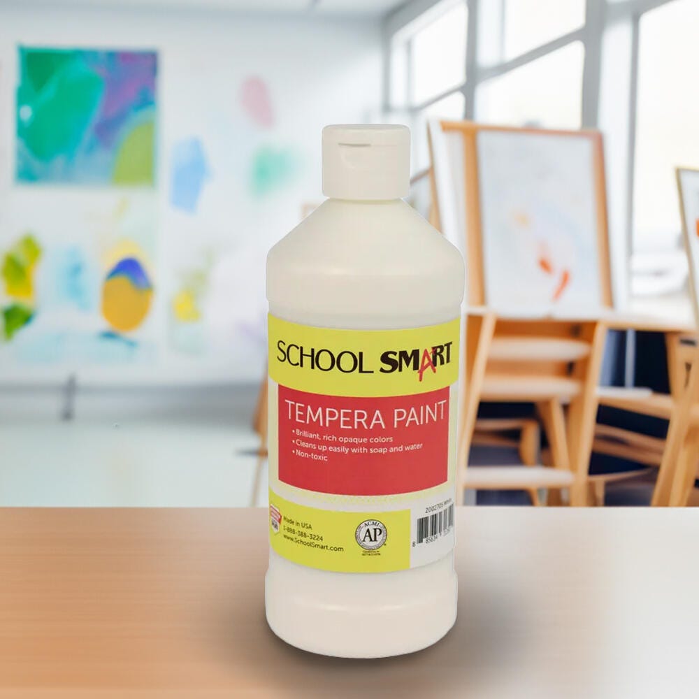 This School Smart traditional tempera paint comes in a white color. The bottle of white tempera paint is great for classrooms, schools, art classes, and after school programs. Our brilliant and rich opaque paint color offers students endless creativity and color blending possibilities. The non-toxic tempera paint cleans up easily with soap and water and won’t chip, flake, or crack when dry.