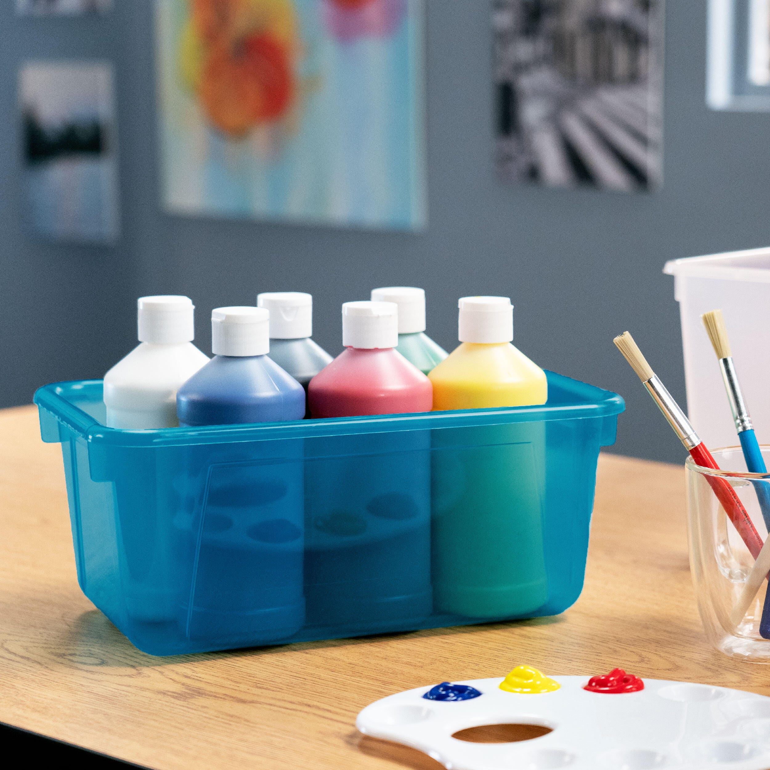School Smart Translucent Storage Bin, 7-7/8 x 12-1/4 x 5-3/8 Inches, Teal