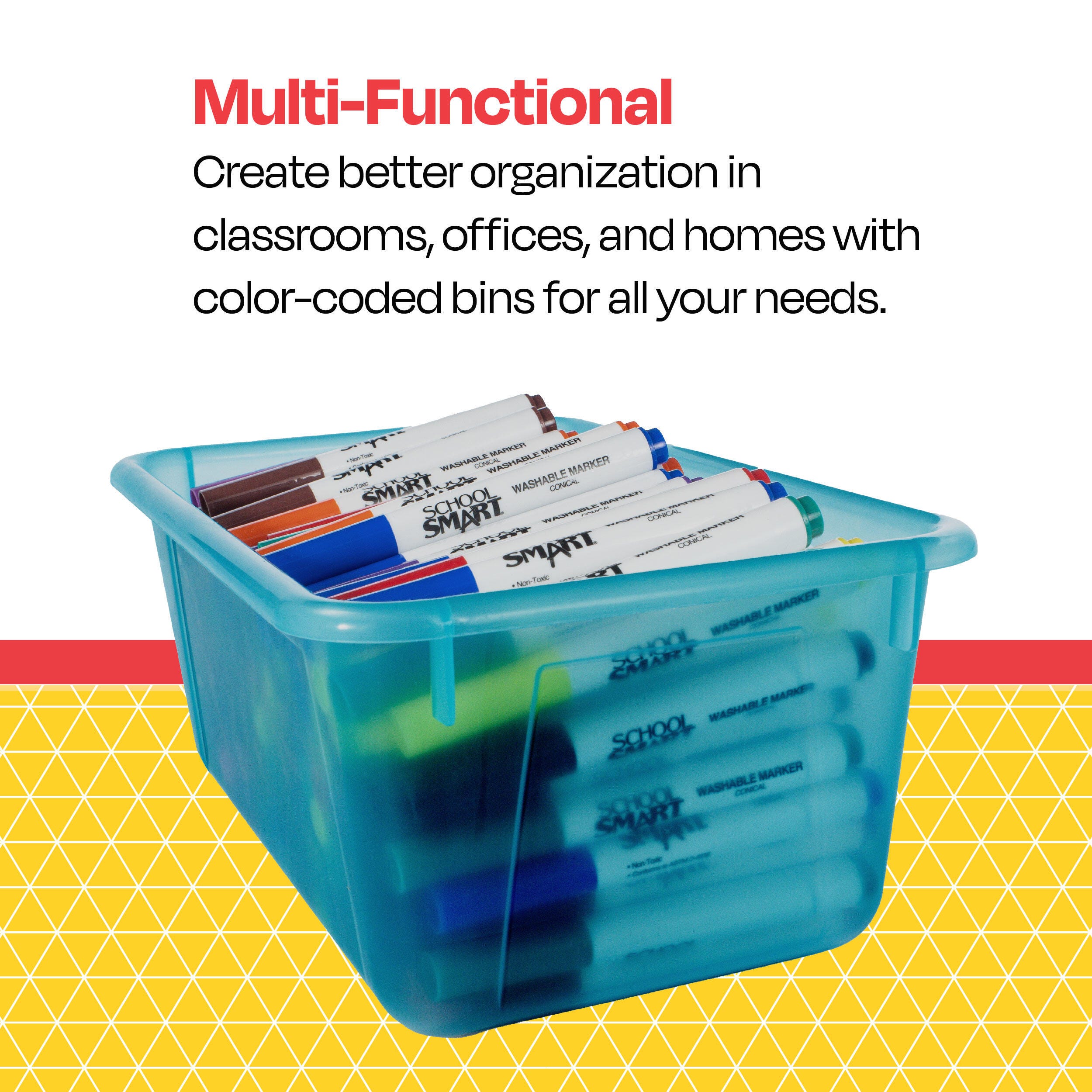 Organize with School Smart; this translucent plastic storage bin is tinted in a bright color but is clear enough to easily identify contents from afar. Our plastic cubby bins are easy to use and hold. Use them on their own or with cubby shelves. Whether you’re teaching STEM or STEAM, the bright colors help with classroom organization, and your imagination sets the limit. Use the plastic storage containers for elementary schools, kindergarten, preschool, childcare centers, and playrooms. The storage box works well as an arts and crafts container, toy organizer, book holder, and more.