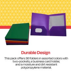- Pack of 36 Polypropylene Pocket Folders in the Following Colors/Quantities: