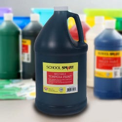 The School Smart washable tempera paint gallon comes in a black color. This large bottle of black tempera paint is great for classrooms, schools, art classes, and after school programs. The brilliant and rich opaque paint color offers students endless creativity and color blending possibilities. Our non-toxic tempera paint cleans up easily with soap and water and won’t chip, flake, or crack when dry.Features