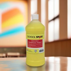 The School Smart washable tempera paint comes in a yellow color. This bottle of yellow tempera paint is great for classrooms, schools, art classes, and after school programs. The brilliant and rich opaque paint color offers students endless creativity and color blending possibilities. Our non-toxic tempera paint cleans up easily with soap and water and won't chip, flake, or crack when dry.Features