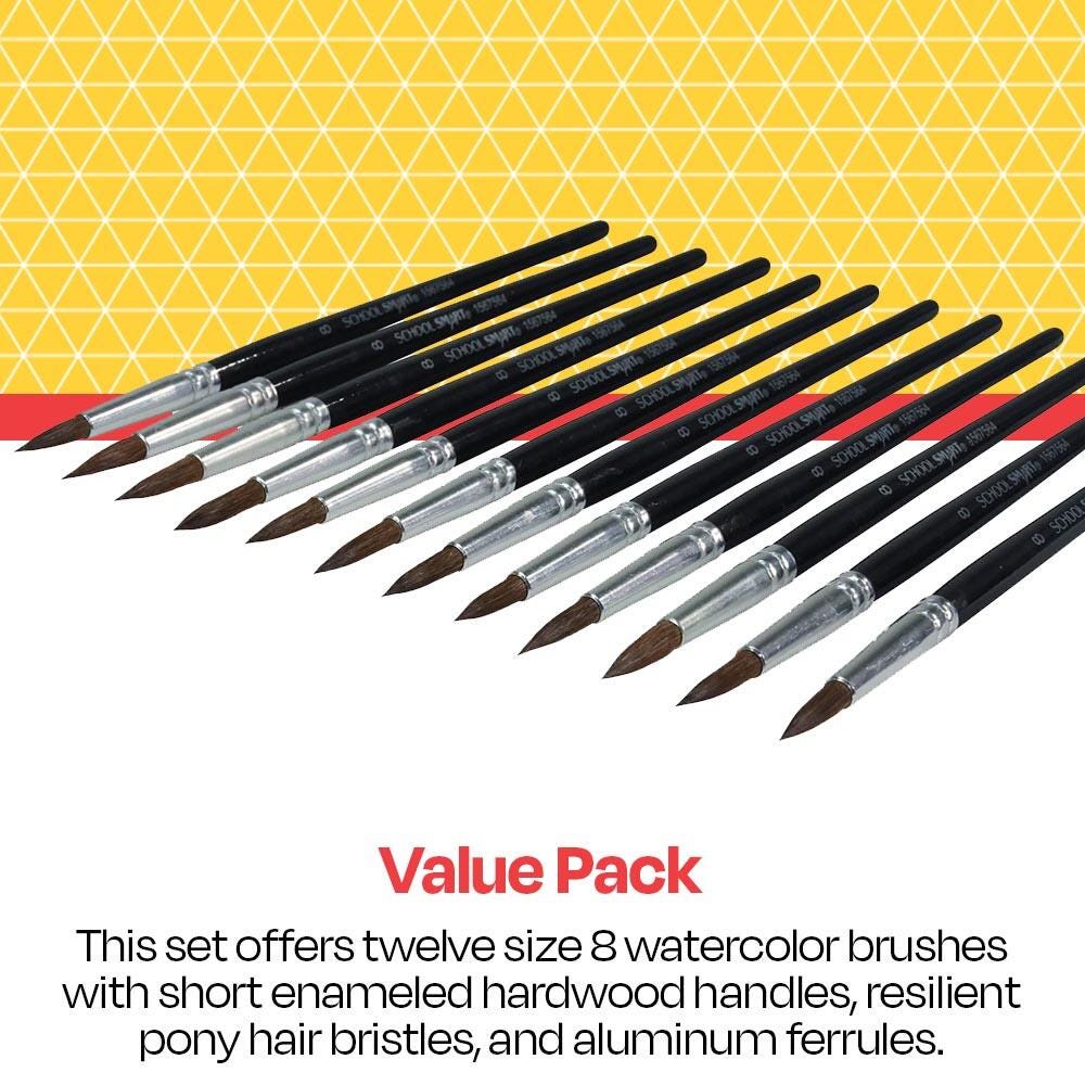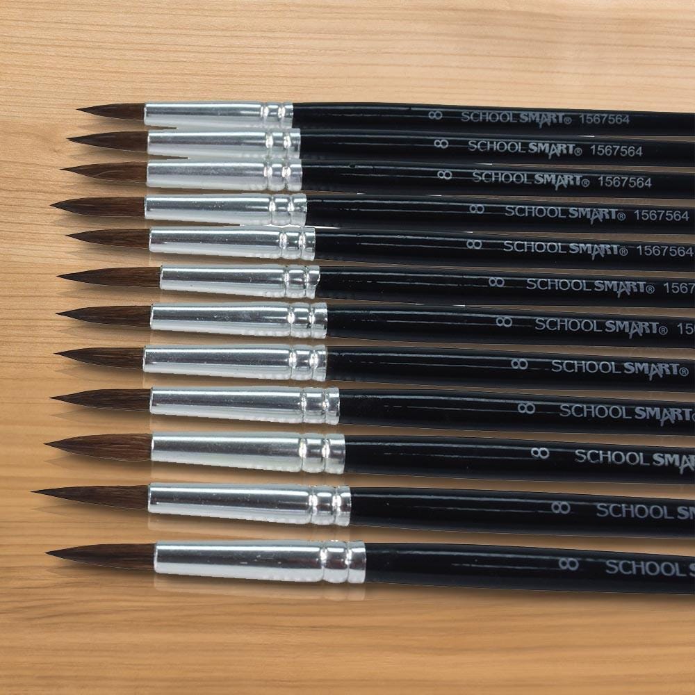 School Smart Watercolor Paint Brushes, Short Handle, Size 8, Set of 12