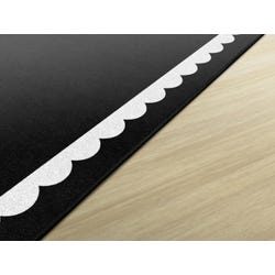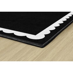 This modern black-and-white rectangular classroom carpet will have you saying "oui" with its classic scalloped border design. This area rug is designed to be durable for high-traffic areas, yet chic to elevate your decor. Available in several sizes.