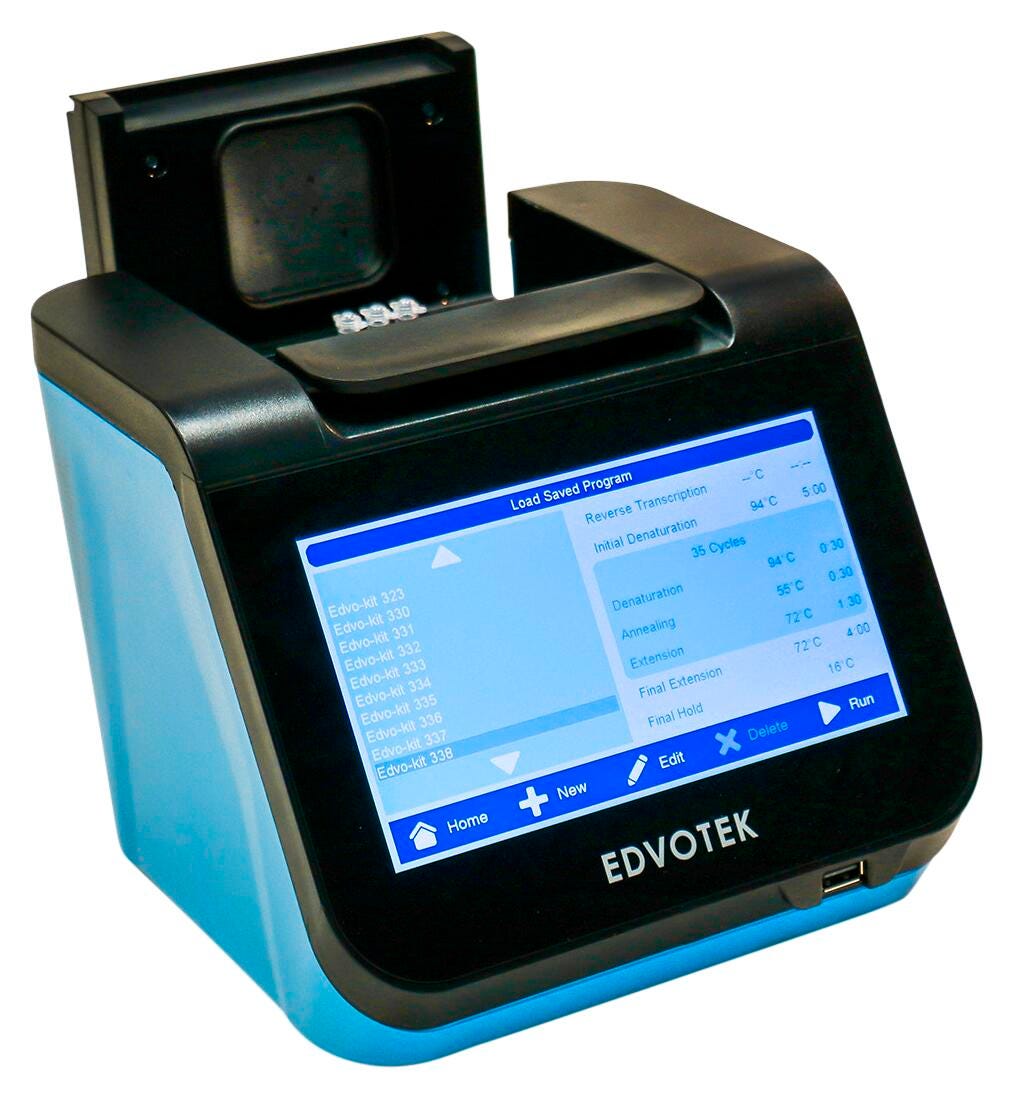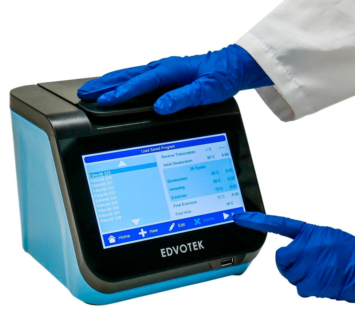 The EdvoCylcer Jr. is a low-profile and easy-to-use PCR with a sleek design that features 16 wells to run individual PCR experiments as well as a touchscreen and onboard computer to simplify operation with no secondary device needed.