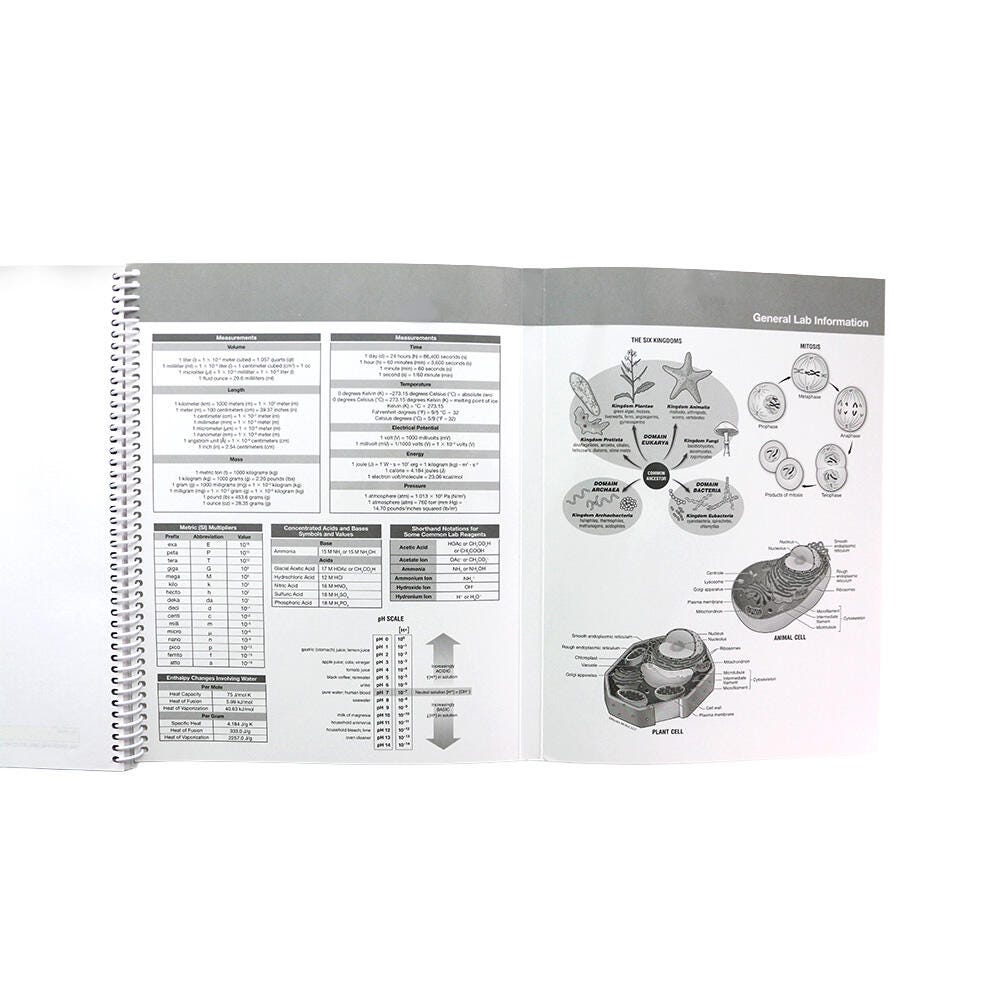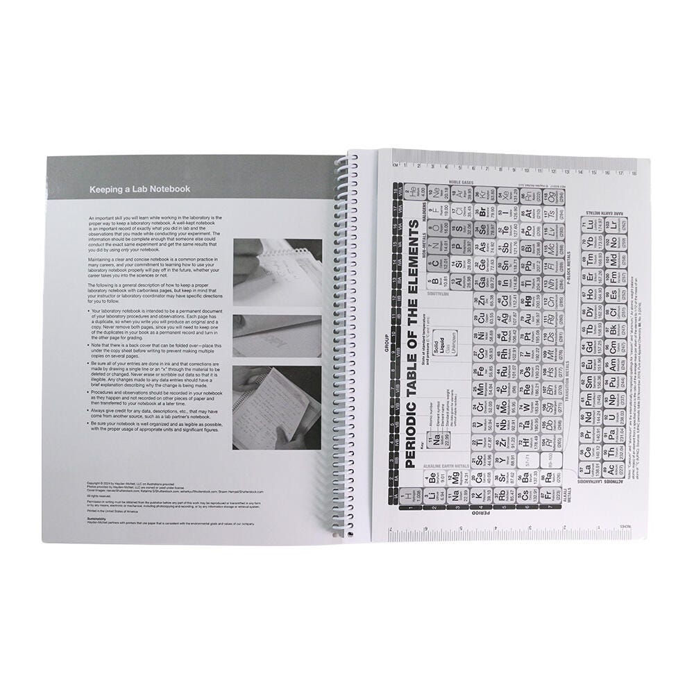 Scientific Lab Notebook featuring carbonless sets has plasticoil spiral binding that allows notebook to lay flat. It is provided with fully laminated front and back covers to protect against lab spills. Cover is featured with updated periodic table that offers great support to your studies. Spiral bound notebook of 50 pages has unique back cover that folds over to avoid bleed through and between sets. It contains "Table of Contents" for students to keep track of their labs. It is also provided with "How to Keep a Laboratory Notebook" guidelines from Dartmouth for convenience. Notebook measures 8-1/2 L x 11 W inches, and comes with sequentially numbered pages and has signature blocks for student/witness. Notebook is featured with high-quality white BPA-free NCR paper for durability and is sold as 20 per pack.