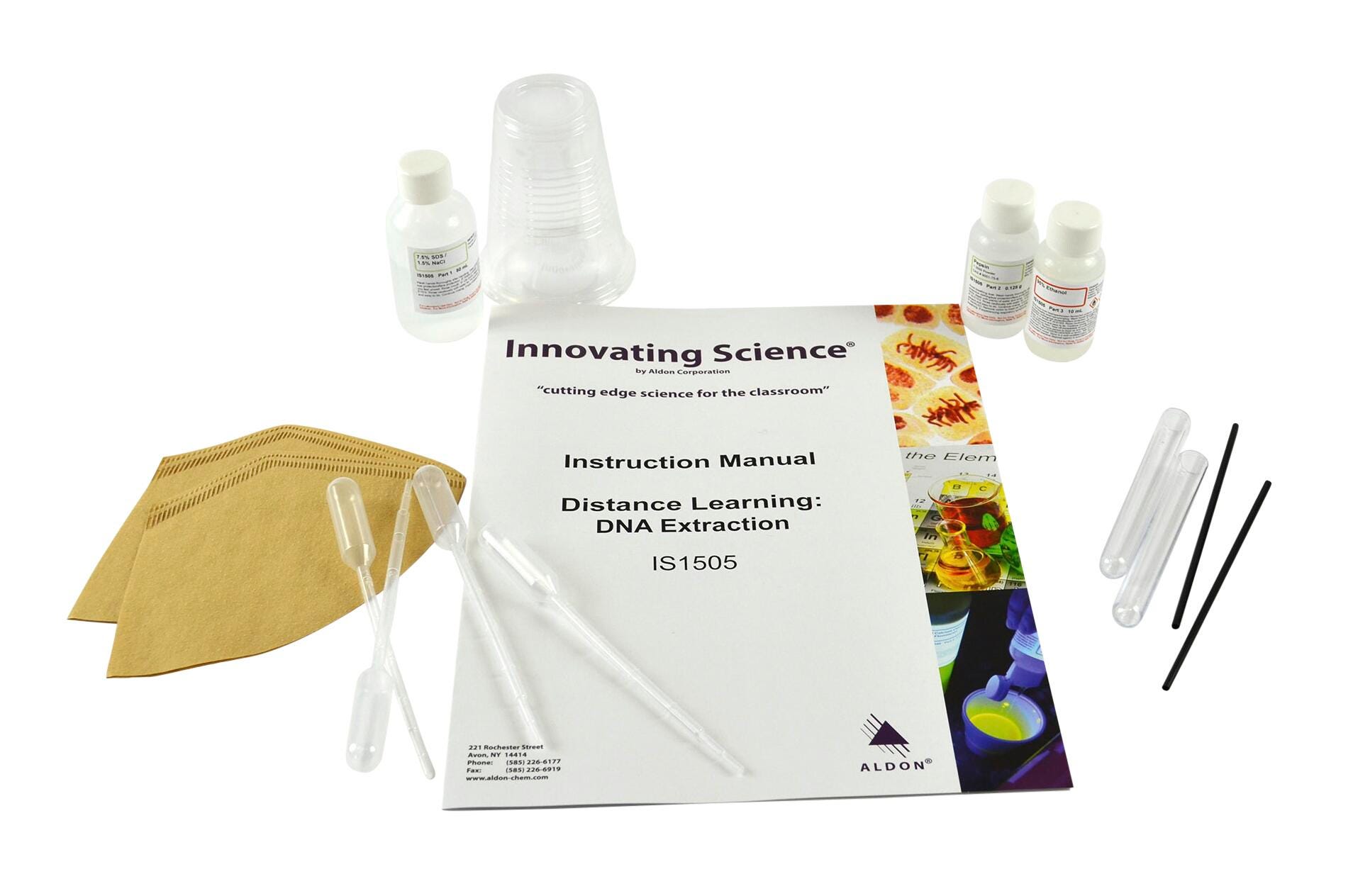 Innovative Science DNA Extraction lab teaches students about the history and discovery of DNA and its structure. By using a plant material, they will understand the nature of genetic inheritance and the role of DNA and proteins in genetic expression using biological detergents, enzymes, and ethanol to isolate DNA. Plant material is not included in the kit. Kit contains an Instruction Manual and enough material for 2 groups of students.Includes