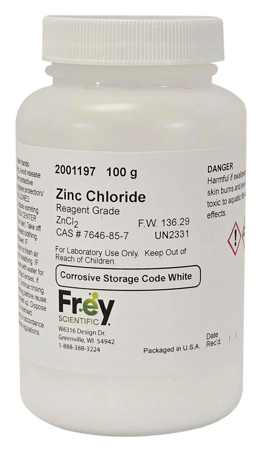Frey Scientific Zinc Chloride, Granular, Lab Grade, 100 Grams