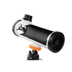 The Celestron Kids Newtonian Telescope is a great scope for beginners, teaching students about the inner workings of the telescope, how light travels through a telescope, and the life of the telescope's designer, Sir Isaac Newton. It features a removable side panel that shows the inner workings of the scope, helping students and young astronomers understand how this important tool functions. This Newtonian Reflector telescope has an easy-to-assemble tripod that can be placed on a table for easy control and viewing. The optical tube can be threaded directly onto a photographic tripod or monopod to suit your preferences best. Intended for ages 8+.Aperture: 50mm