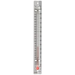 Frey Scientific V-Back Metal Thermometer offers reading in both Fahrenheit and Celsius. Durable and affordable thermometer will stand up to years of classroom use. Thermometer is sold as 30 per pack. Suitable for grades K through 12.Features