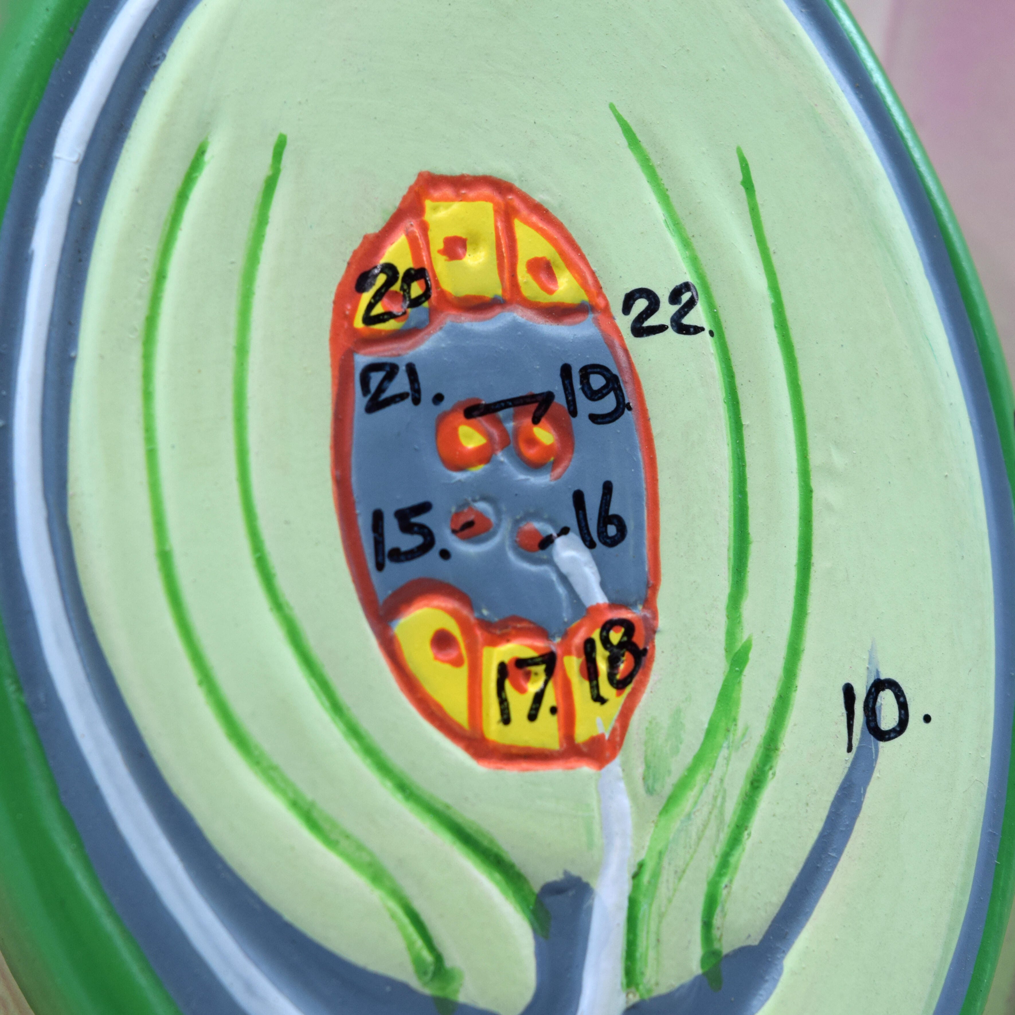 - Colorful plaque provides a generalized cross section of a flowering plant for a detailed introduction to its structure and reproduction