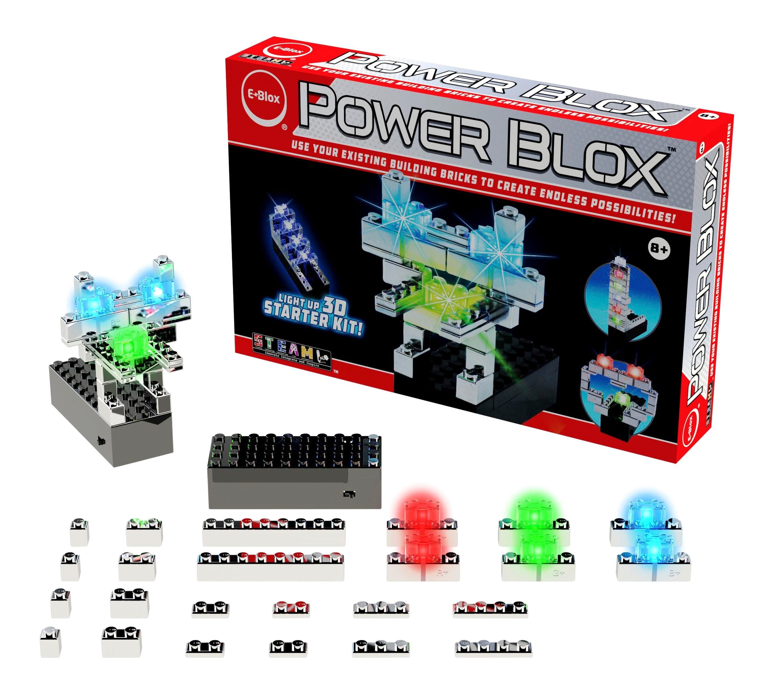 This kit provides hours of fun and educational play. The tin plated parts are conductive and act like wires carrying power from the battery modules to the LEDs. Build a robot with green glowing eyes, or a red glowing heart, or a tower of red, green and blue lights.Features