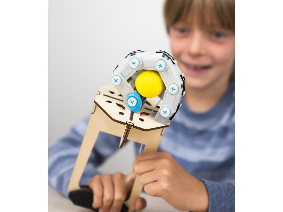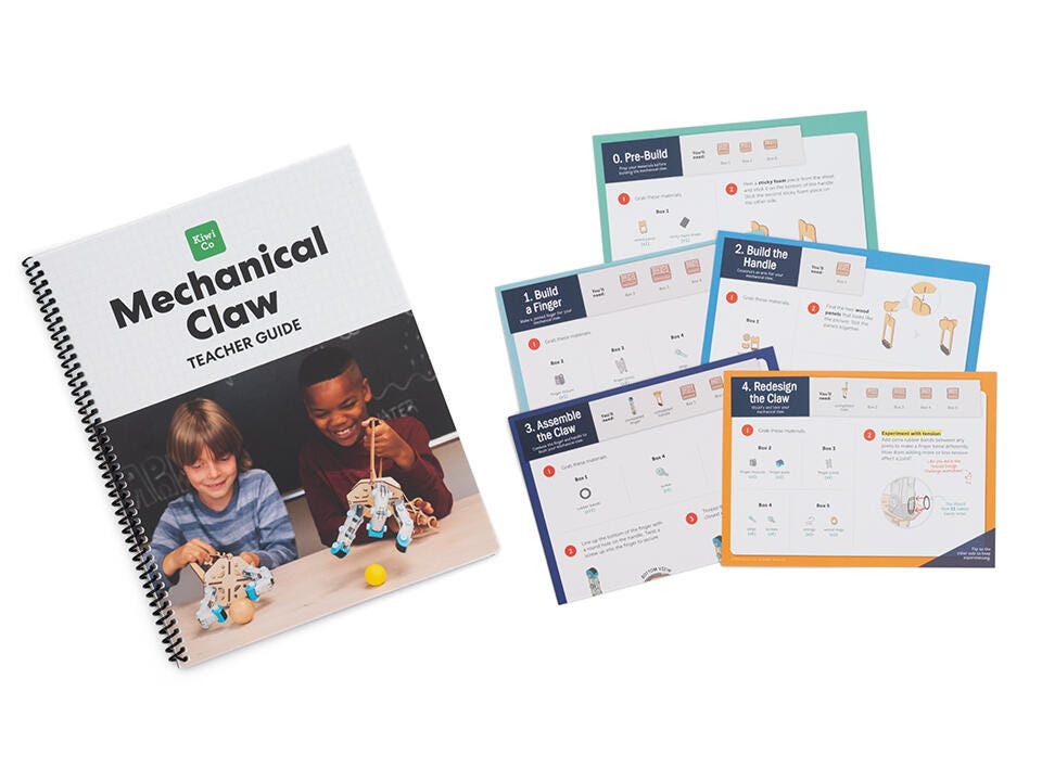 The Mechanical Claw Classroom Pack from KiwiCo guides students as they build jointed claws inspired by the biomechanics of a human hand. Students will explore engineering and design concepts, articulation, and tension as they swap the number of joints and fingers in their claws. The kit also provides engineering challenges, like picking up a slippery marble and playing a clawsome board game, for students to group up and apply their learning. The project is broken up into multiple suggested class periods and serves 20 to 40 students for versatile application. Designed for 3rd to 5th grade classrooms.Features