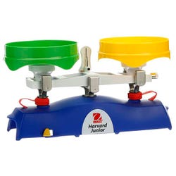 Ohaus Harvard Junior Two Pan Balance has removable bowl-type or flat pans for weighing a variety of materials. It features built-in storage locks, stackability on either platform, built-in handles and zero adjust knob. Balance comes with 8-piece weight set and a 16-page, elementary-level activity guide.Features