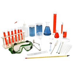 Useful for setting up new and restocking existing labs. These pieces have been selected equipment needed for basic lessons on measurement. This pack consists of the following items: 3 tall form beakers (50 mL, 250 mL, 400 mL), 2 erlenmeyer flasks (50 mL, 250 mL), 2 graduated cylinders (10 mL, 100 mL), 1 plastic funnel, 6 test tubes (15 x 125 millimeters), 1 test tube brush, 1 test tube holder, 1 test tube rack, 1 100 millimeter watch glass, safety goggles, microspatula, thermometer 10 to 110 degrees celsius, plastic wash bottle, 1 ruler, 6 3 mL dropper pipettes, 2 glass stir rods 8 inch, hand magnifier (3x / 6x)