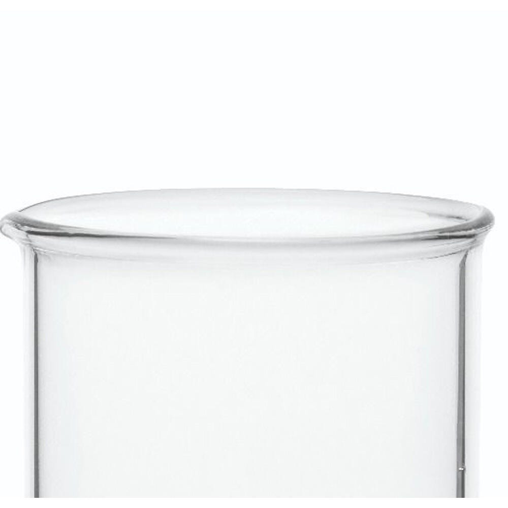 Pack of 12 beakers with 250ml capacity. Made from low-expansion borosilicate glass, these beakers feature heavy and uniform wall thickness, spouts designed for easy pouring, and beaded tops. Also include white printed graduations (from 25-200ml, at 25ml intervals) and a marking area. Tolerance for beakers is approximately +/- 5 percent.