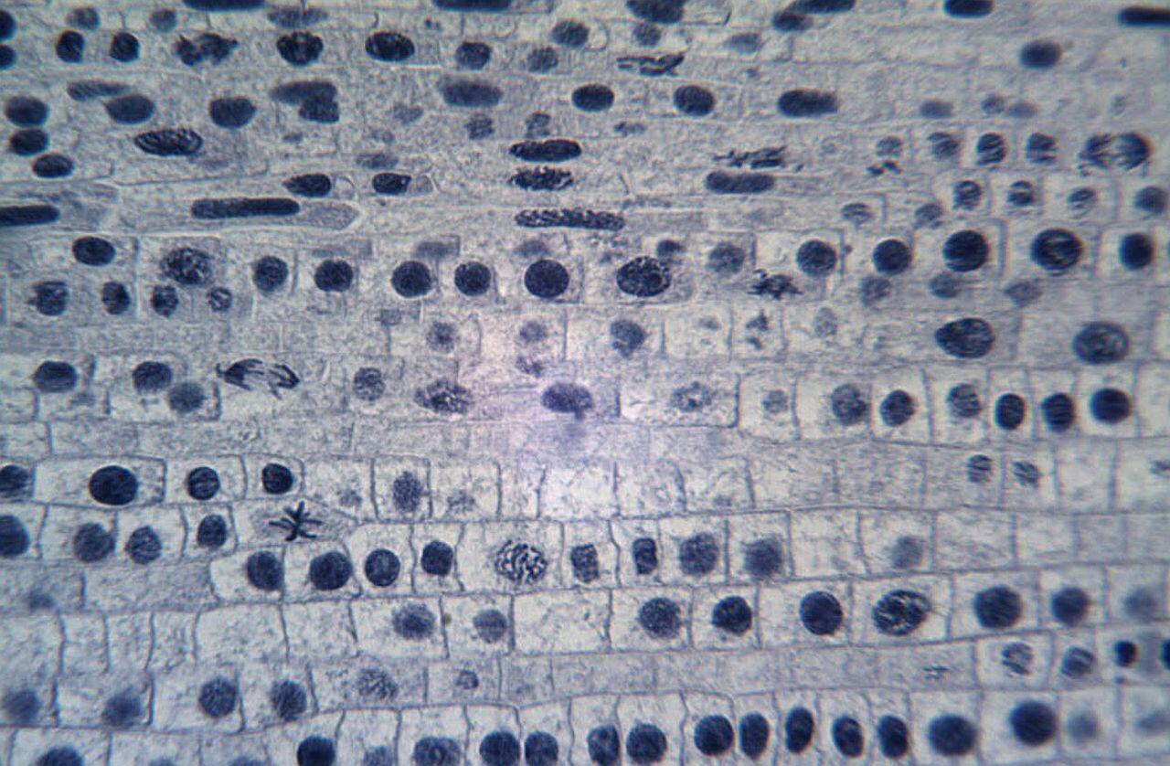 Frey Scientific delivers this Mitosis, L.S. from Allium root tips showing all stages of plant mitosis, carefully stained with iron-hematoxyline after Heidenhain.