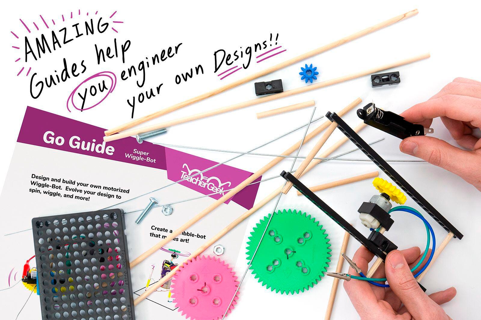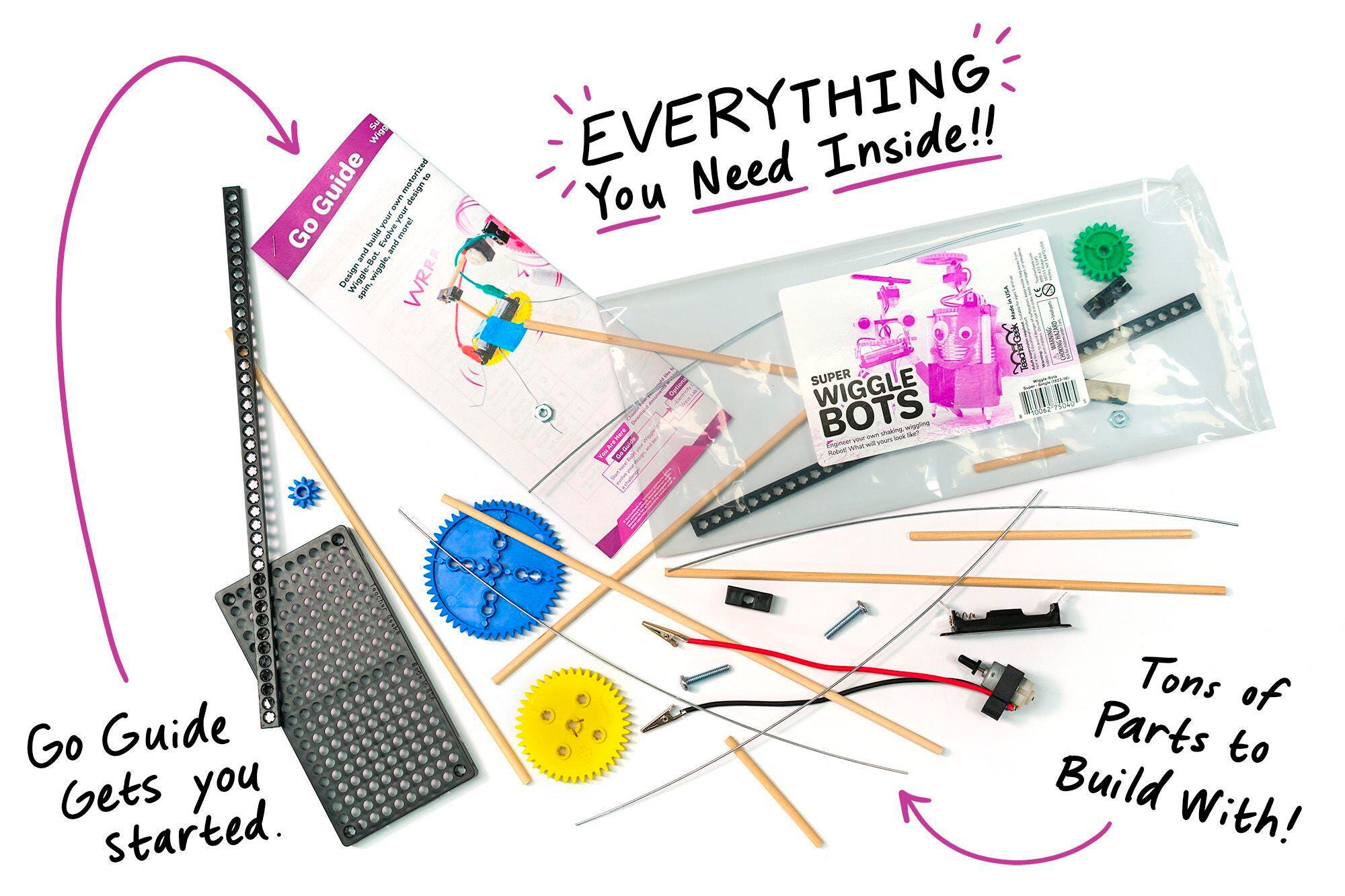 You don’t want bristle bots and cup robots that all come out looking and moving exactly the same way. With TeacherGeek, each Wiggle-Bot turns out as unique as the person who made it. Build and re-build your Bot to do all sorts of cool stuff: make it race, scribble, or dance! The possibilities are endless and will inspire your students to achieve their potential!