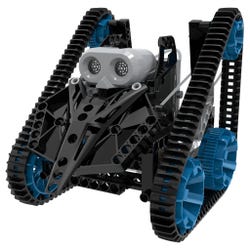 This product focuses on motorized machines that make use of continuous tracks, also known as tank treads, to move themselves and other objects around. Models are controlled by programs and an ultrasound sensor, so in addition to constructing the machines, you’ll also learn how to use the included visual programming app on your tablet or smartphone to code the programs yourself! Build a robot with two large continuous tracks that drives around and avoids obstacles in its path. The attentive tracker bot model detects your hand, moves toward it, and follows it around. Once you understand how the technology works, you can build your own robots using the kit’s 197 building pieces and create your own programs in the programming app, which is available on iOS and Android devices (tablet or smartphone required, not included).1 each, battery box, plug, sensor, 80 pins, 5 converters, 10 connectors, 35 rods, 6 frames, 4 plates, 2 crankshaft gears, 10 axles, 5 gears, 2 worm gears, 6 washers, 1 pin lever, 8 belts, 6 wheel frames, 12 body pieces